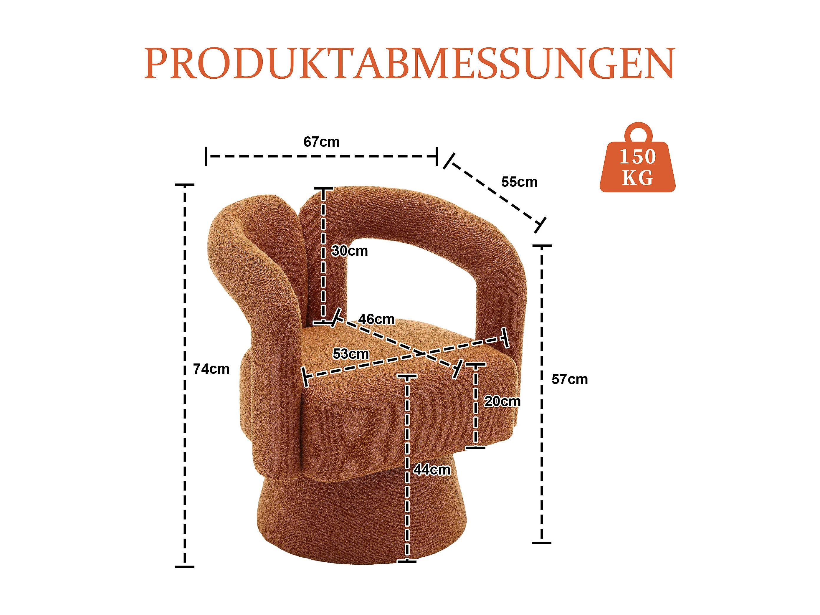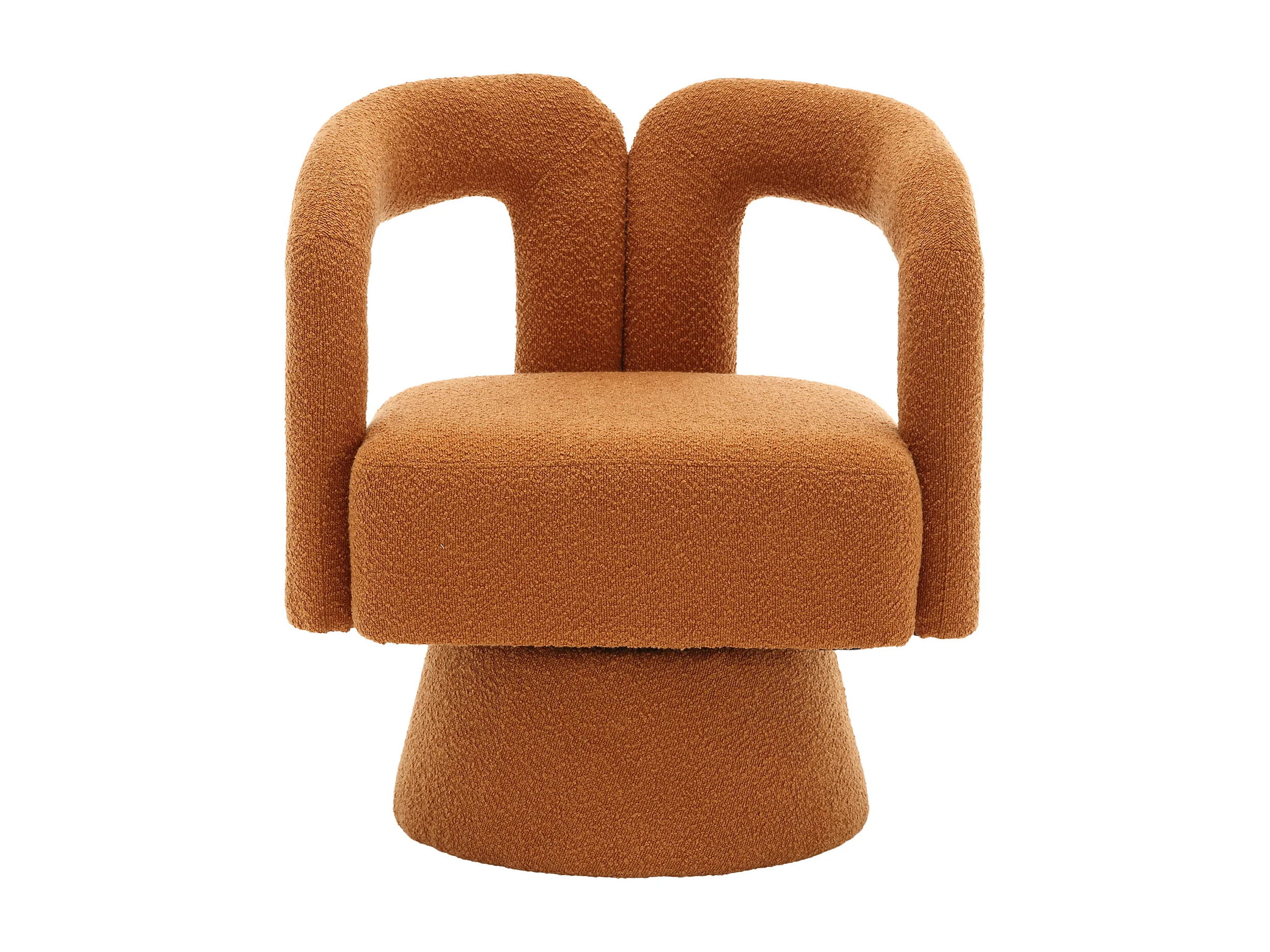 Fauteuil pivotant Tissu bouclé en forme de tonneau - Pour salon, chambre, bureau - Couleur orange