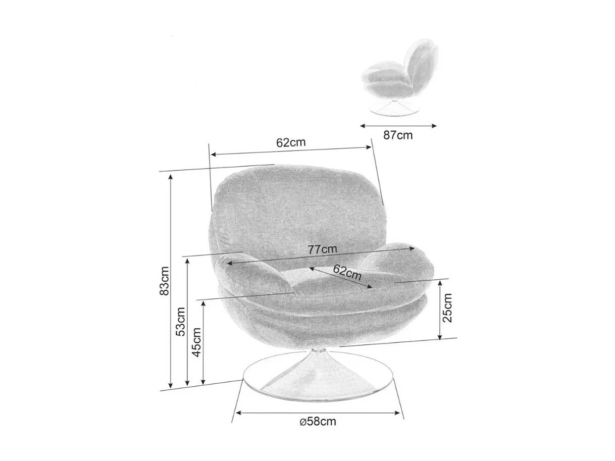 Fauteuil pivotant vintage, tissu gris foncé Noche