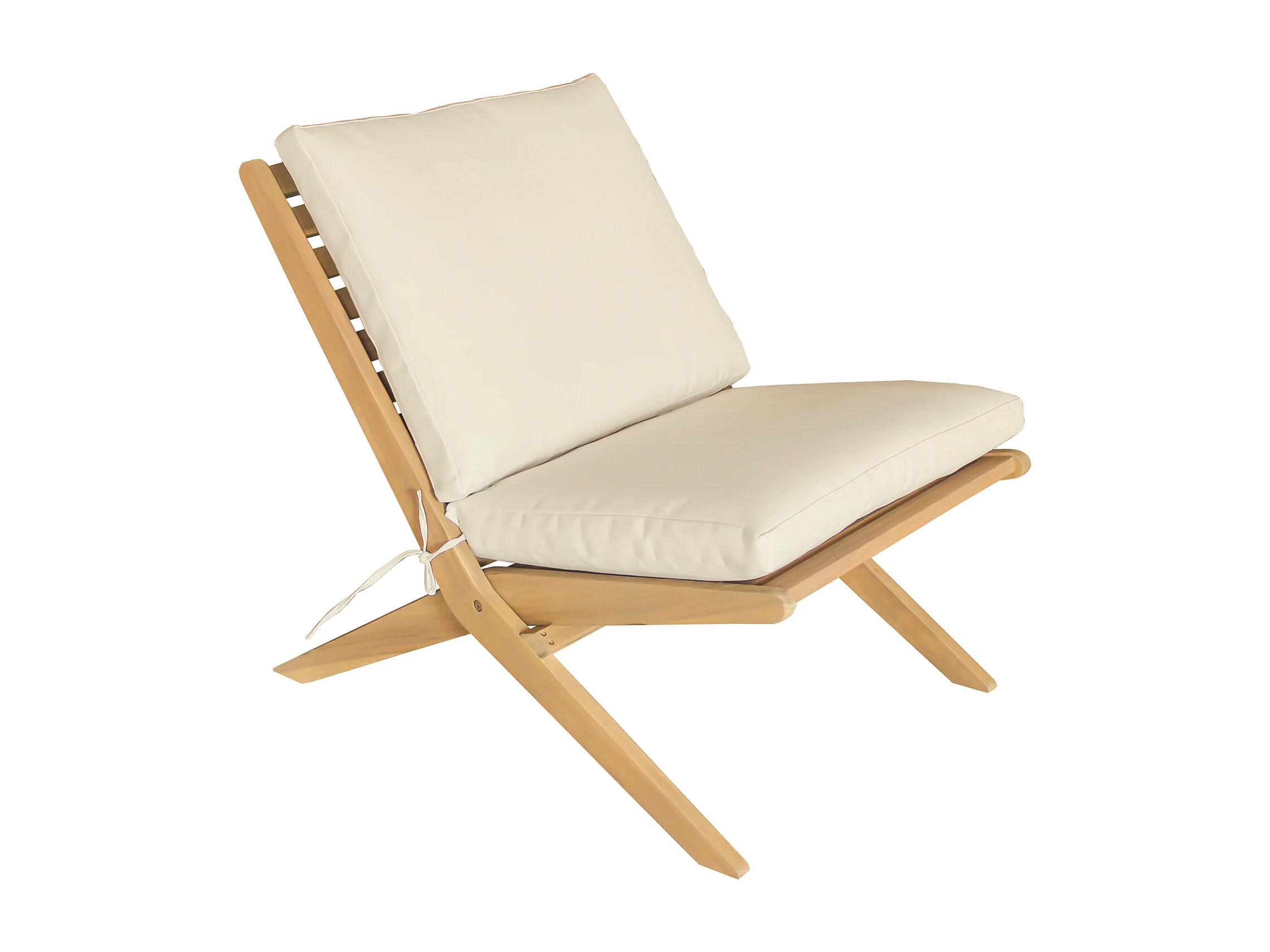 Fauteuil pliant en acacia et coussins beige FARO - HAPPY GARDEN
