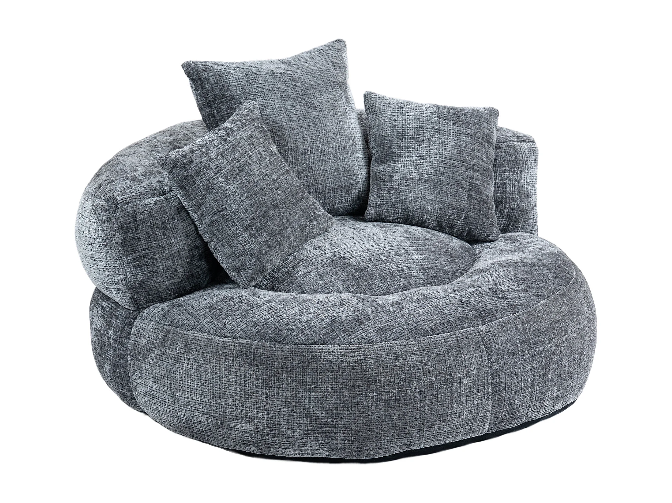 Fauteuil poire avec 3 coussins - Pour adulte et enfant - Chenille gris, sans montage