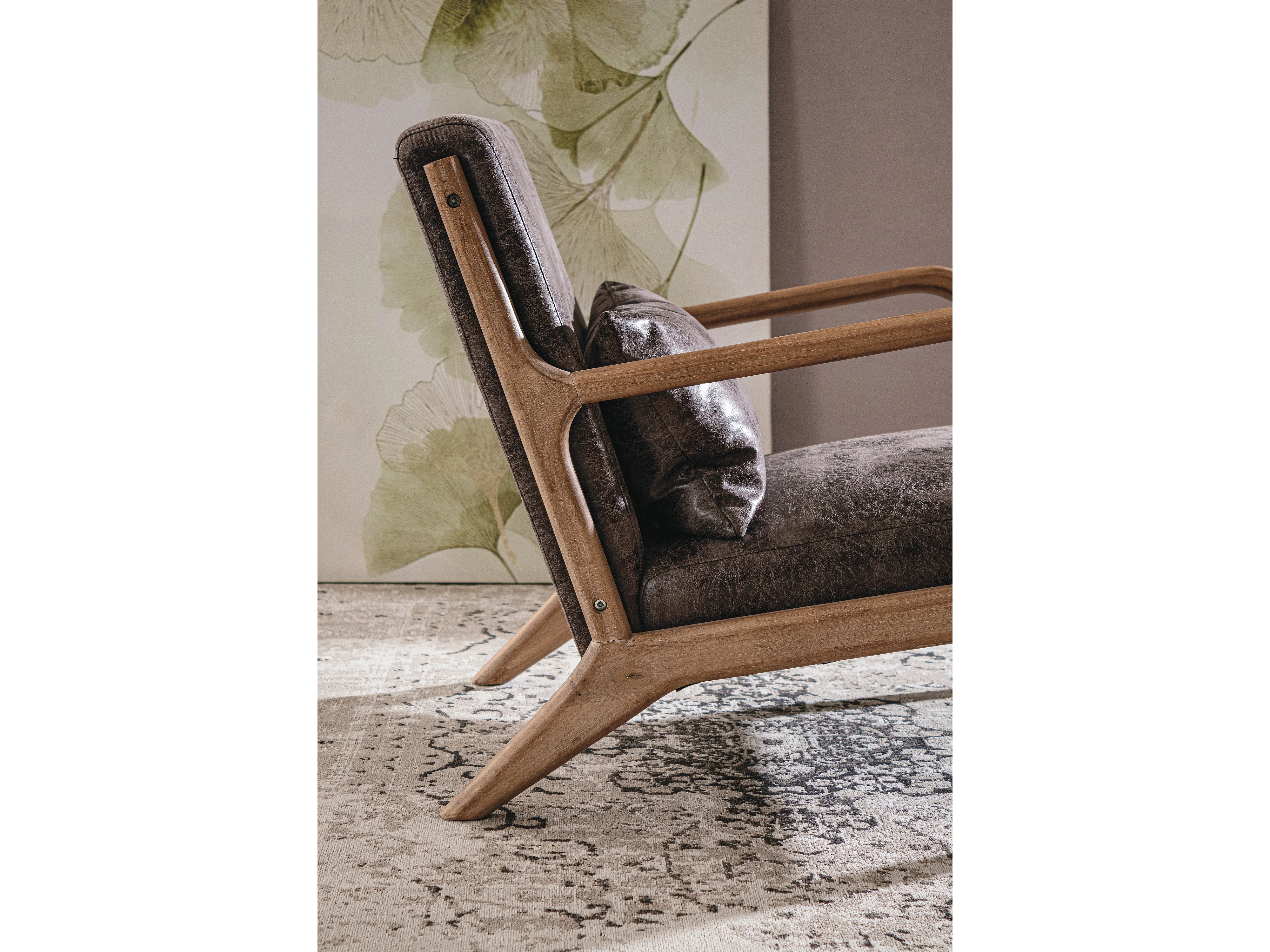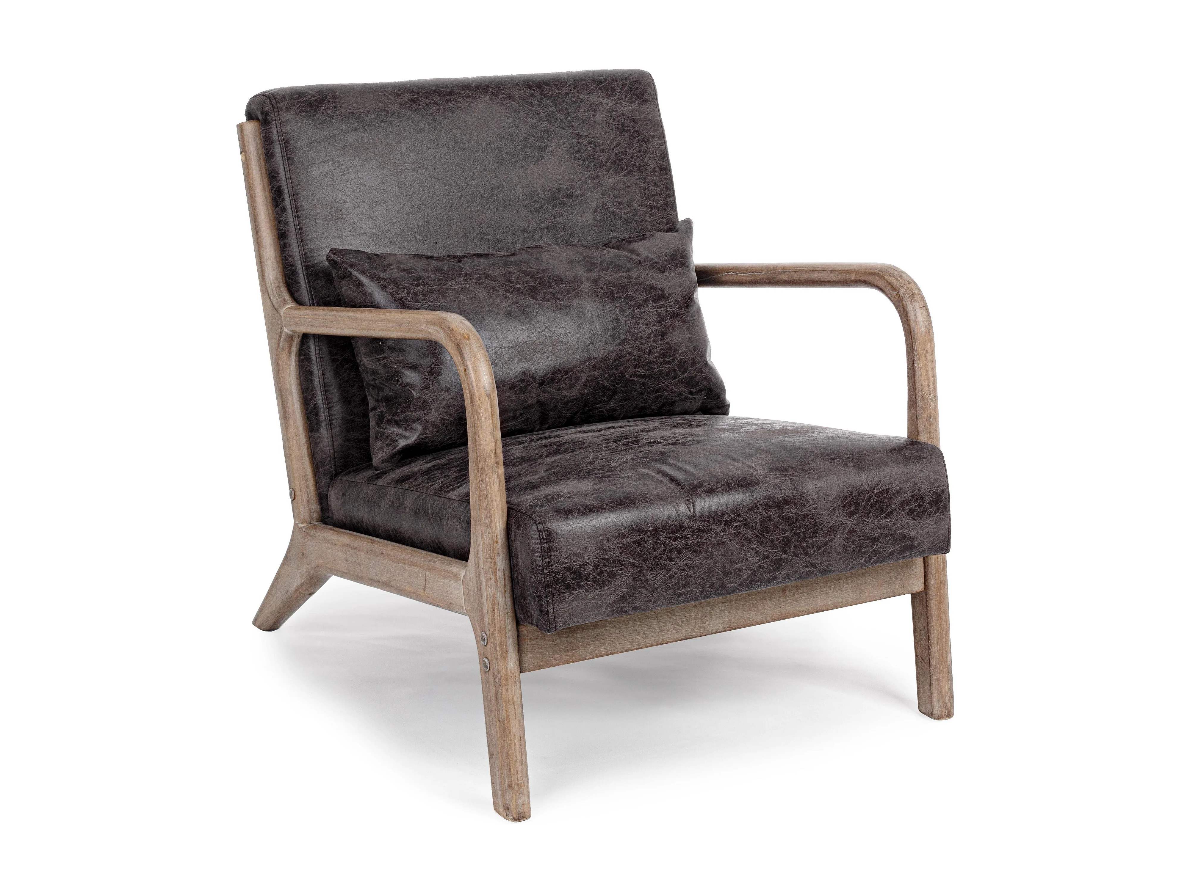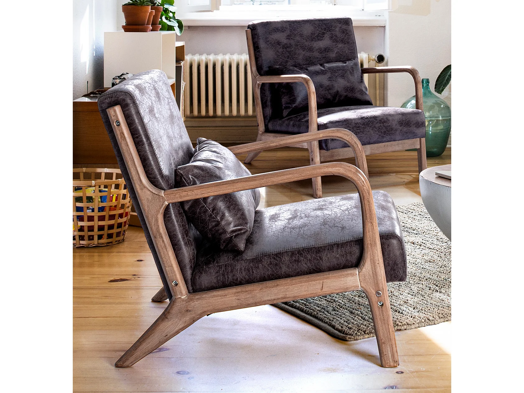 Fauteuil polyester marron foncé et pieds en bois d'hévéa Silla