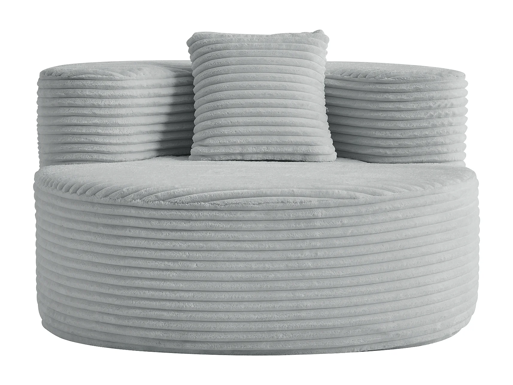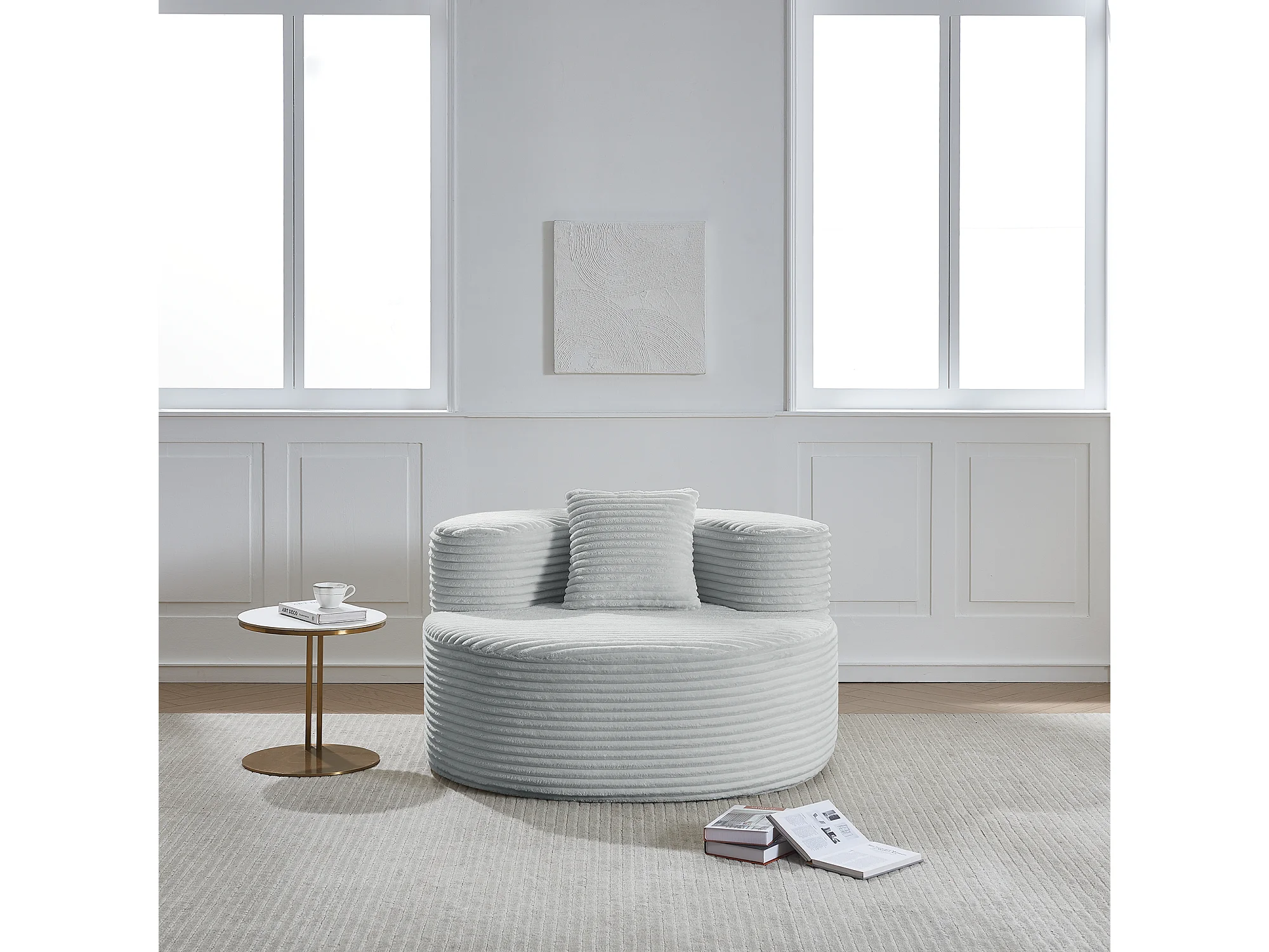 Fauteuil pouf rond avec coussin - Tissu flanelle gris - Pour salon, chambre et appartement
