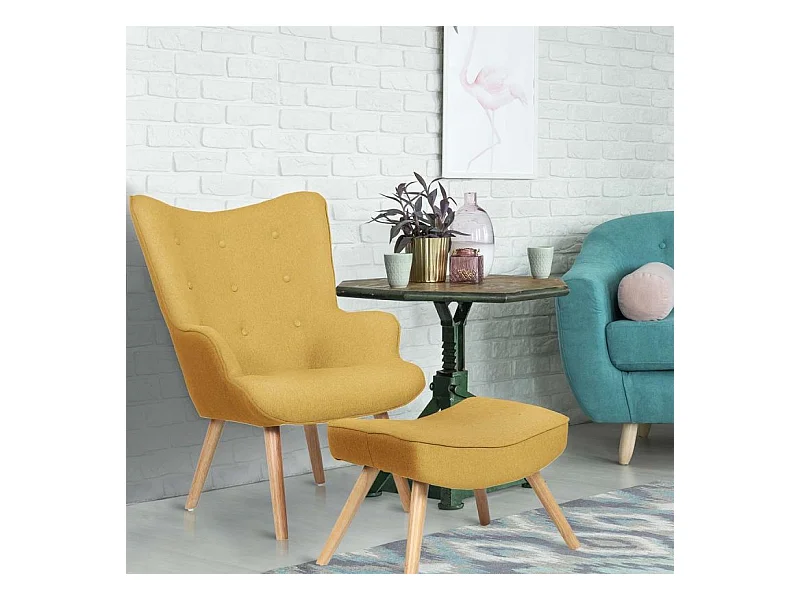 Fauteuil & Pouf Scandinave "Orle" 98cm Jaune