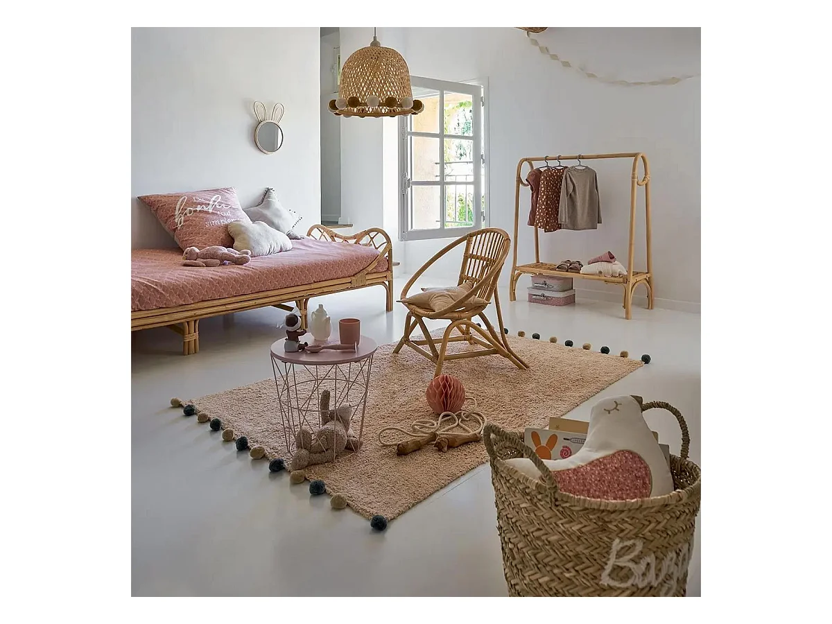 Fauteuil vintage en rotin avec coussin d'assise. Mahe. L 110 x P 60 x H150cm