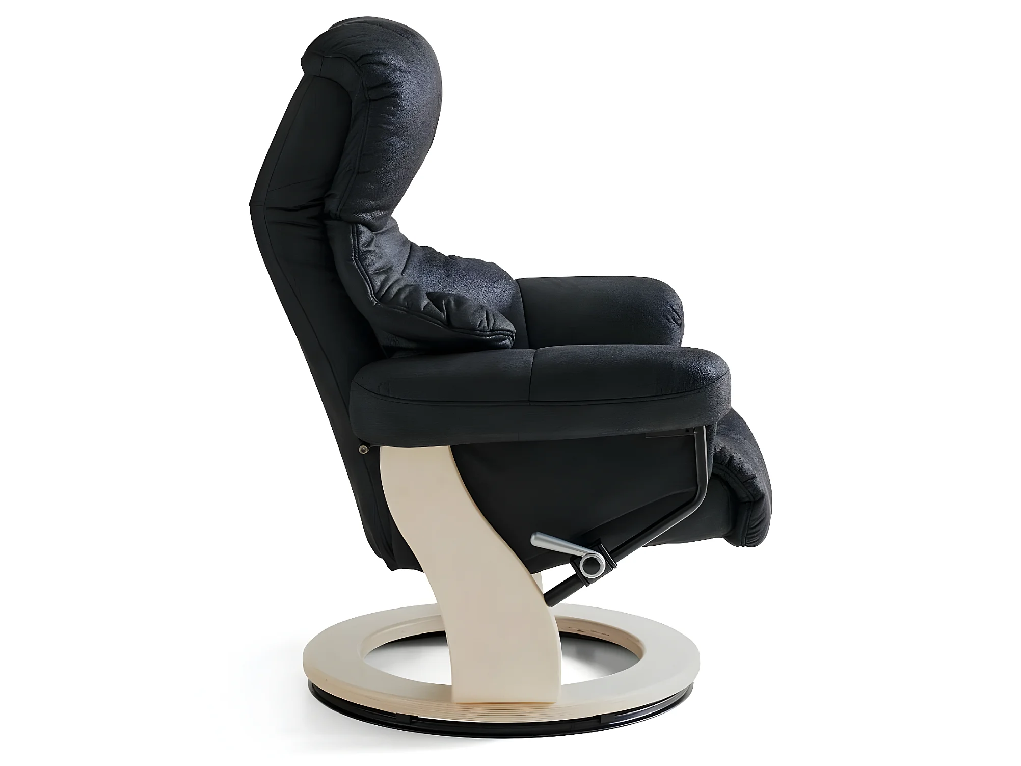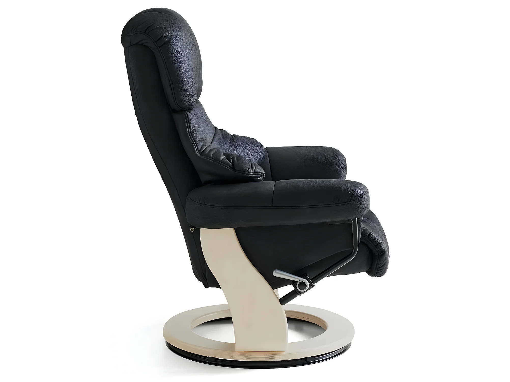 Fauteuil relax avec repose-pieds Crown - Tissu et bois - Noir