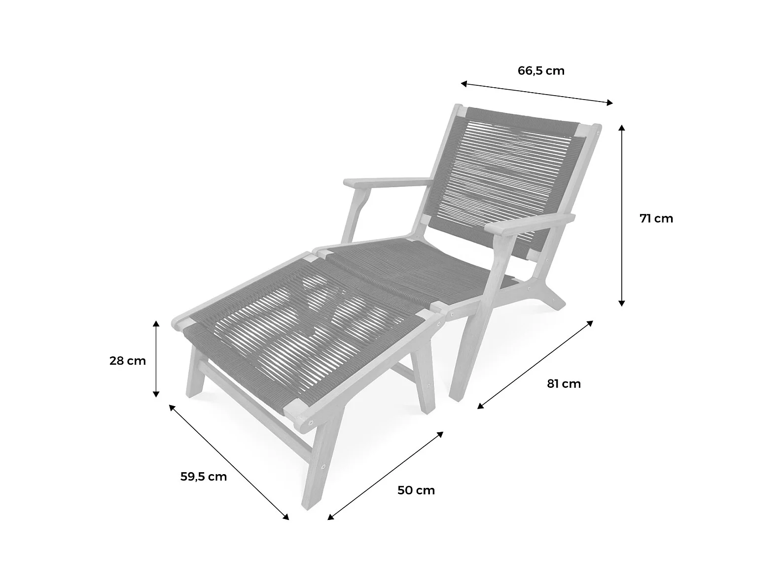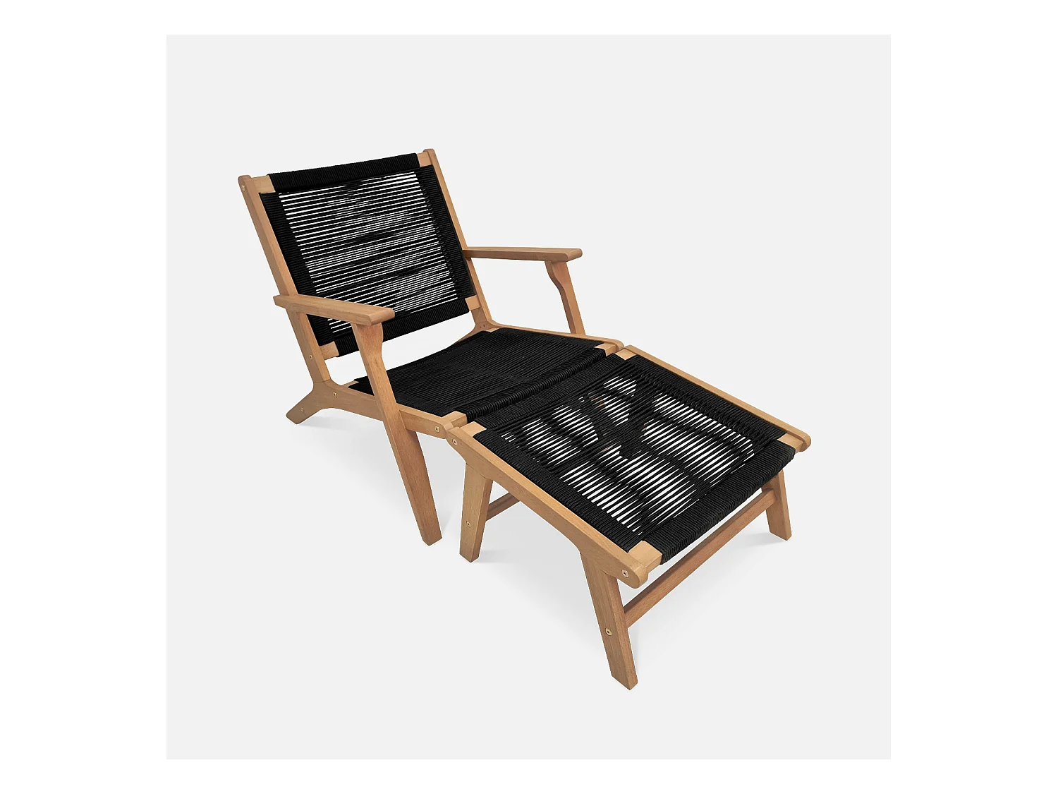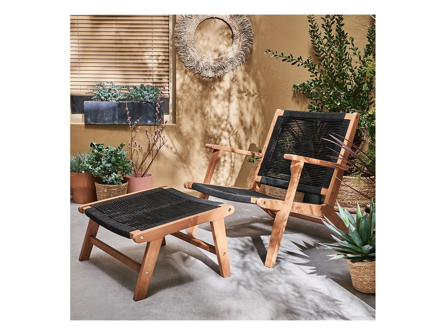 Fauteuil relax – CUZCO – Eucalyptus. Corde noir. avec repose-pieds