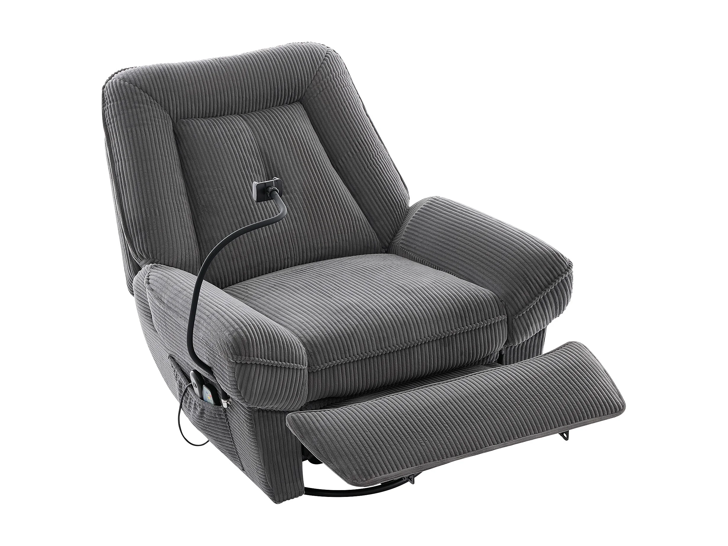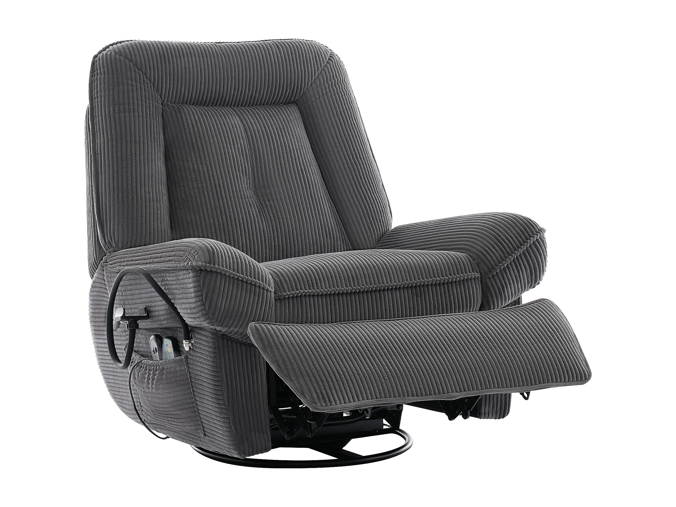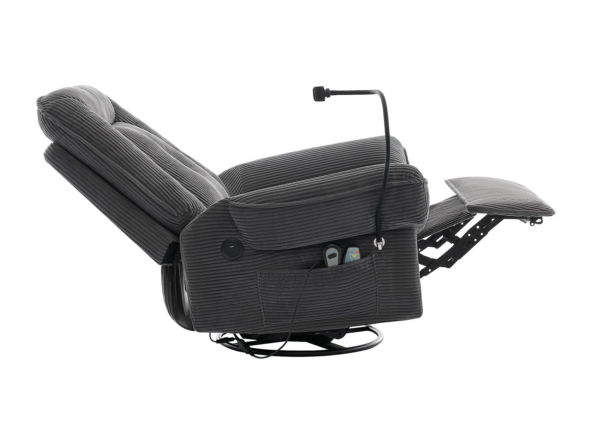 Fauteuil relax électrique en velours côtelé gris - Fonction massage et chauffage , USB