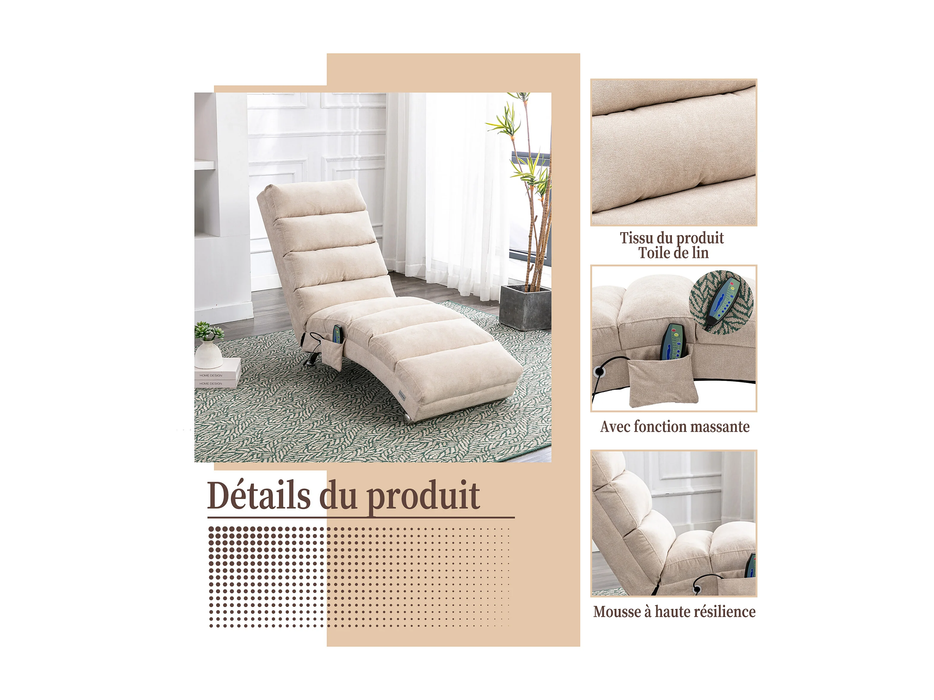 Fauteuil relax électrique - Fauteuil beige - Dossier réglable - en tissu lin - confortable et ergonomique