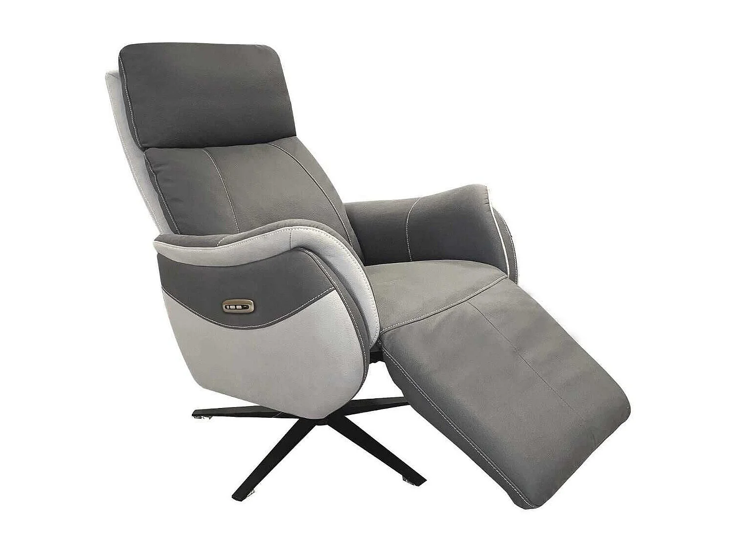 Fauteuil relax électrique pivotant tissu micro grain gris plomb et gris perle - SANGY