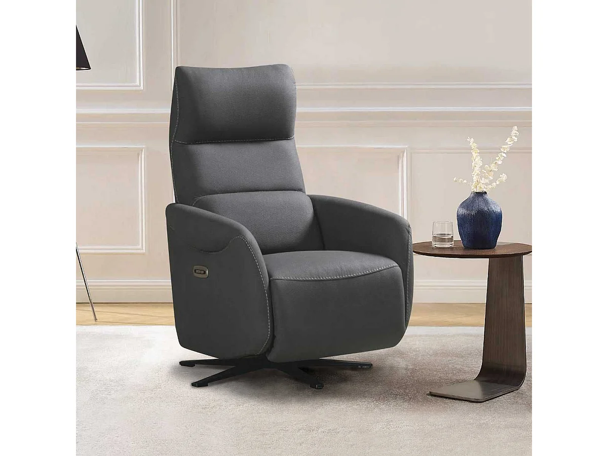 Fauteuil relax électrique pivotant tissu micro peau ultra doux gris foncé - SMALK