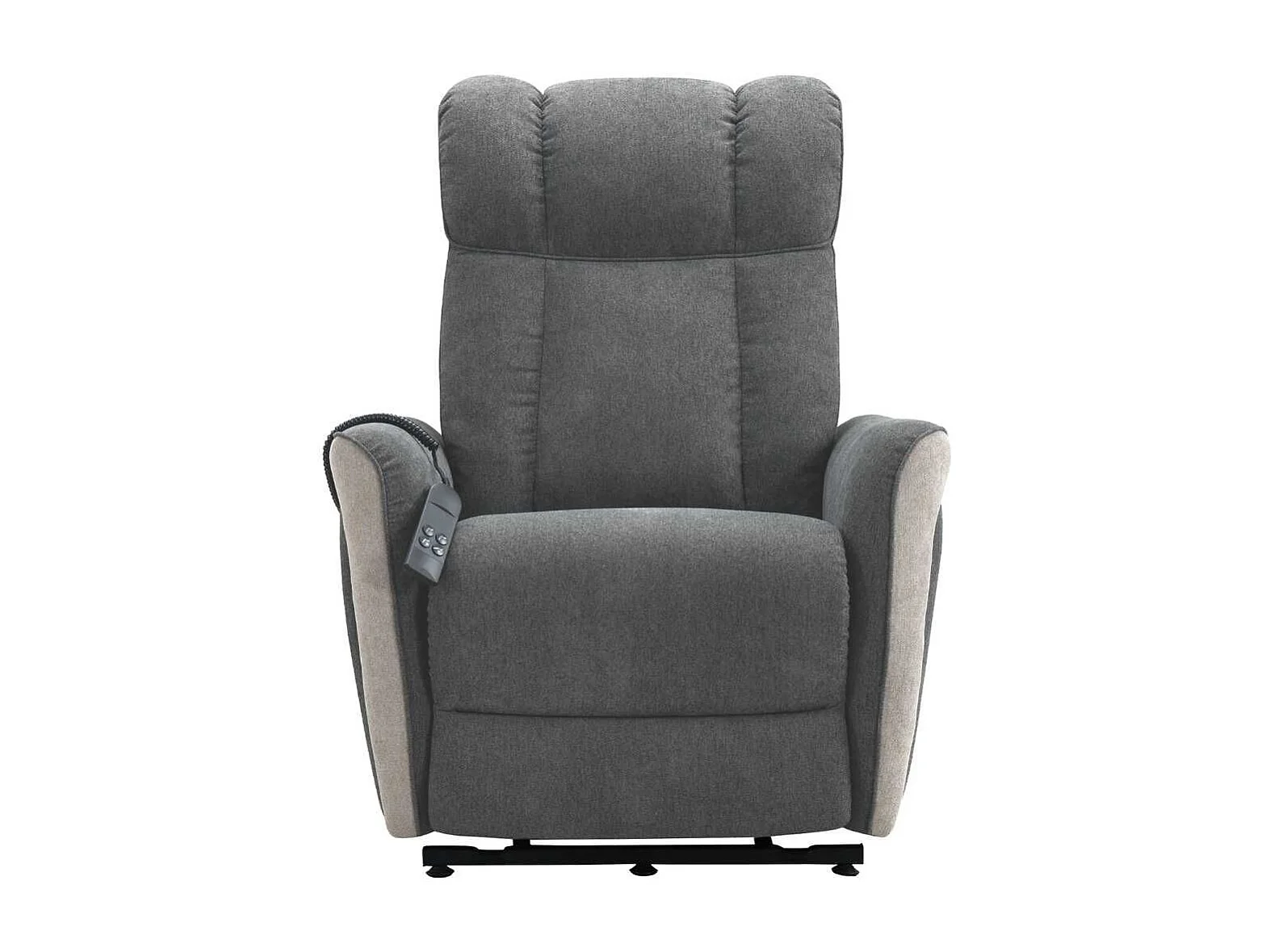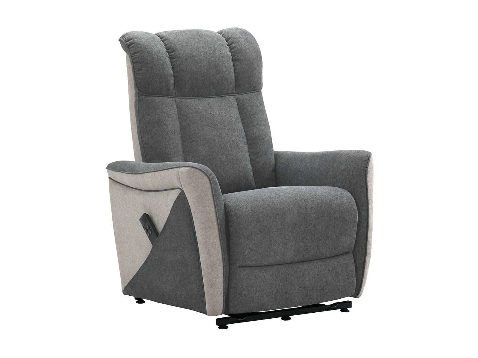 Fauteuil relax électrique releveur bi-moteur tissu velours bicolore gris spécial grande taille - MELIG