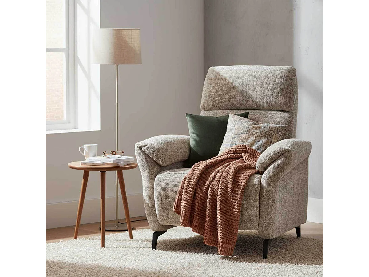 Fauteuil relax électrique tissu maillé ultra doux beige - LAMA