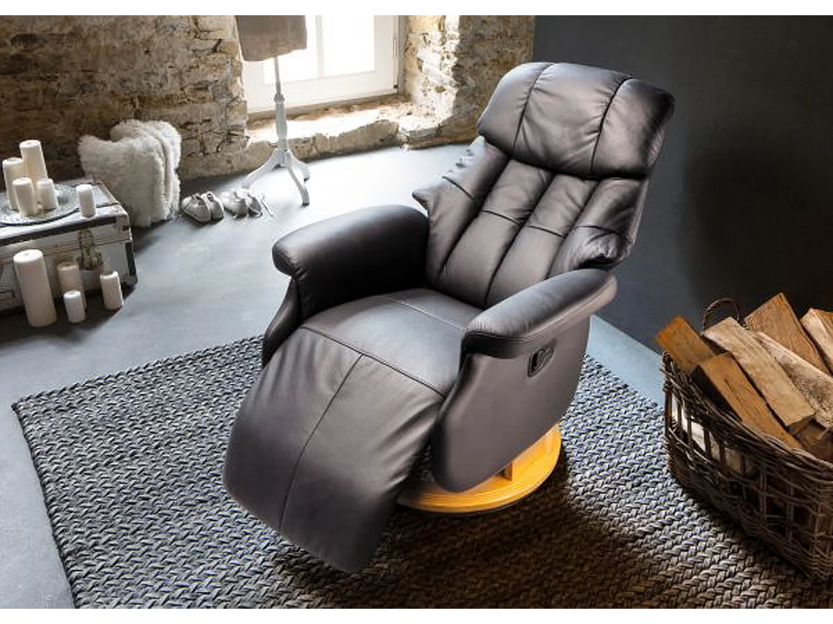 Fauteuil relax en cuir coloris noir et naturel - 77 x 111 x 86 cm