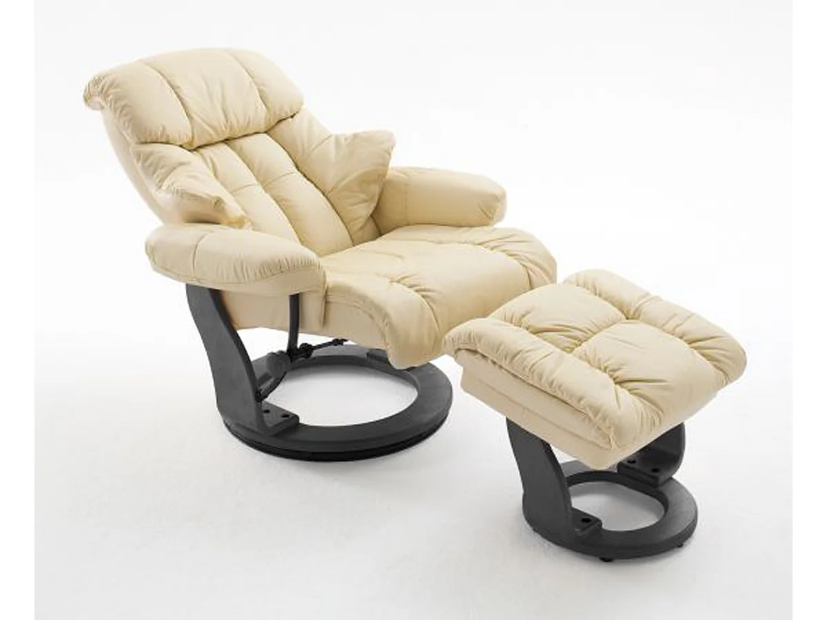 Fauteuil relax en cuir crème et noir avec tabouret - 90 x 104 x 91 cm