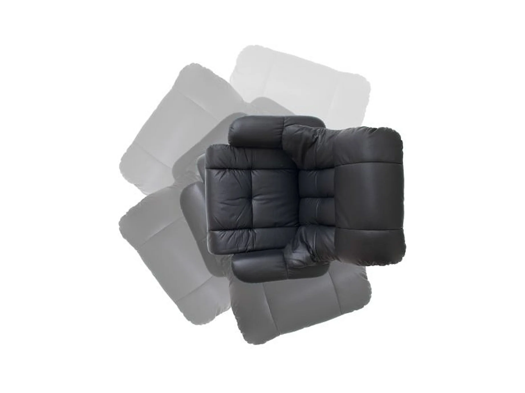Fauteuil relax en cuir noir et noyer avec tabouret - 90 x 104 x 91 cm
