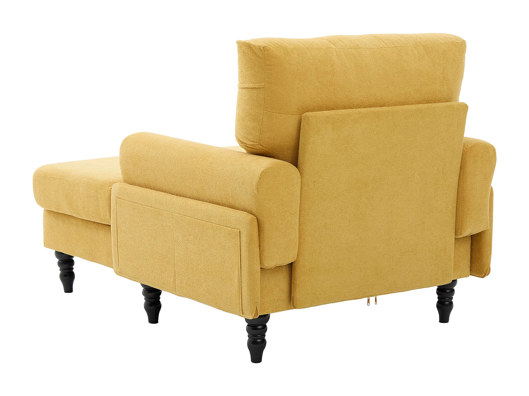 Fauteuil relax en tissu chenille jaune moutarde - Avec poches latérales