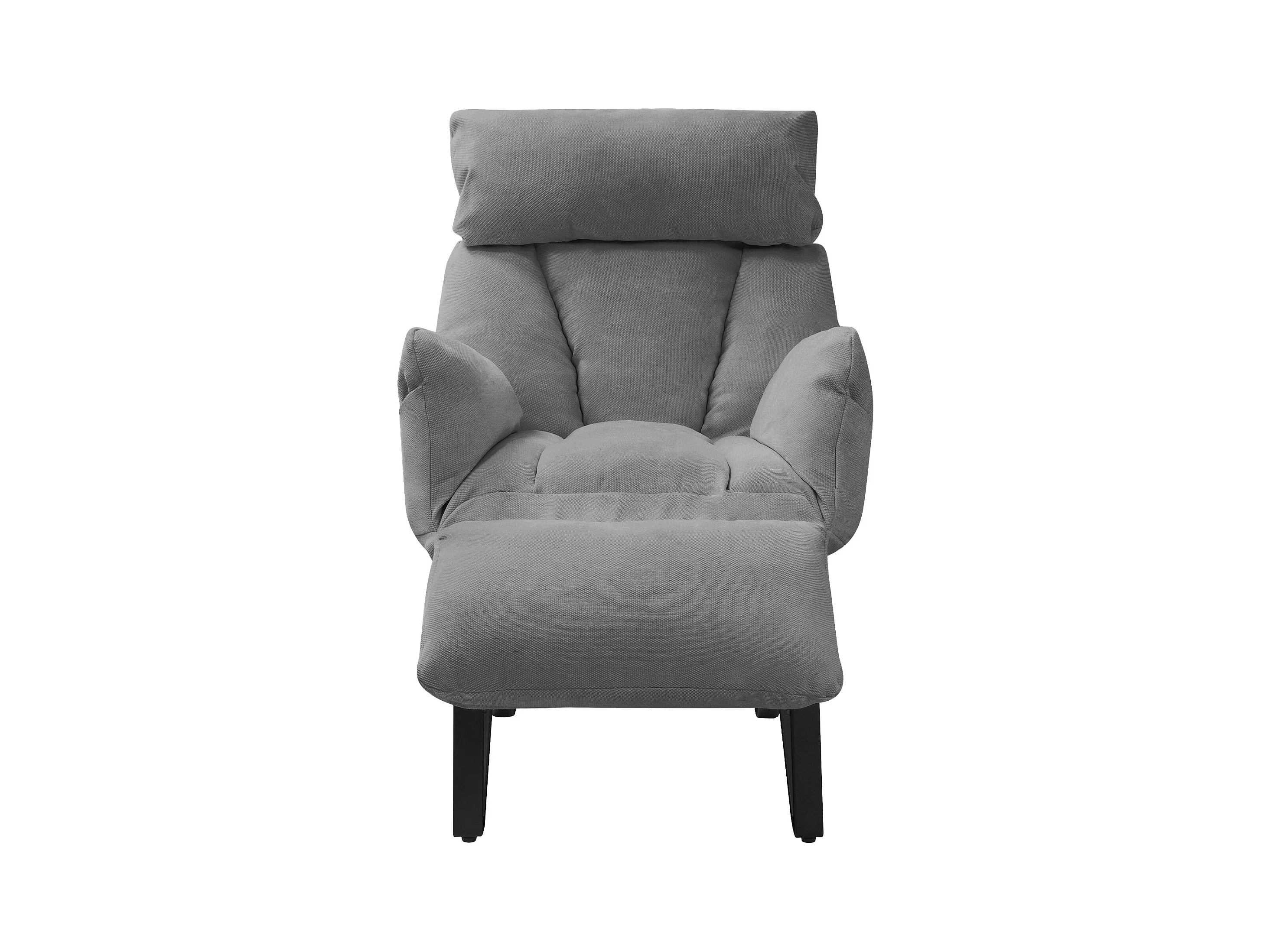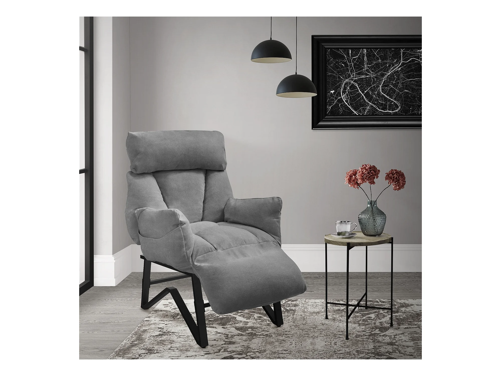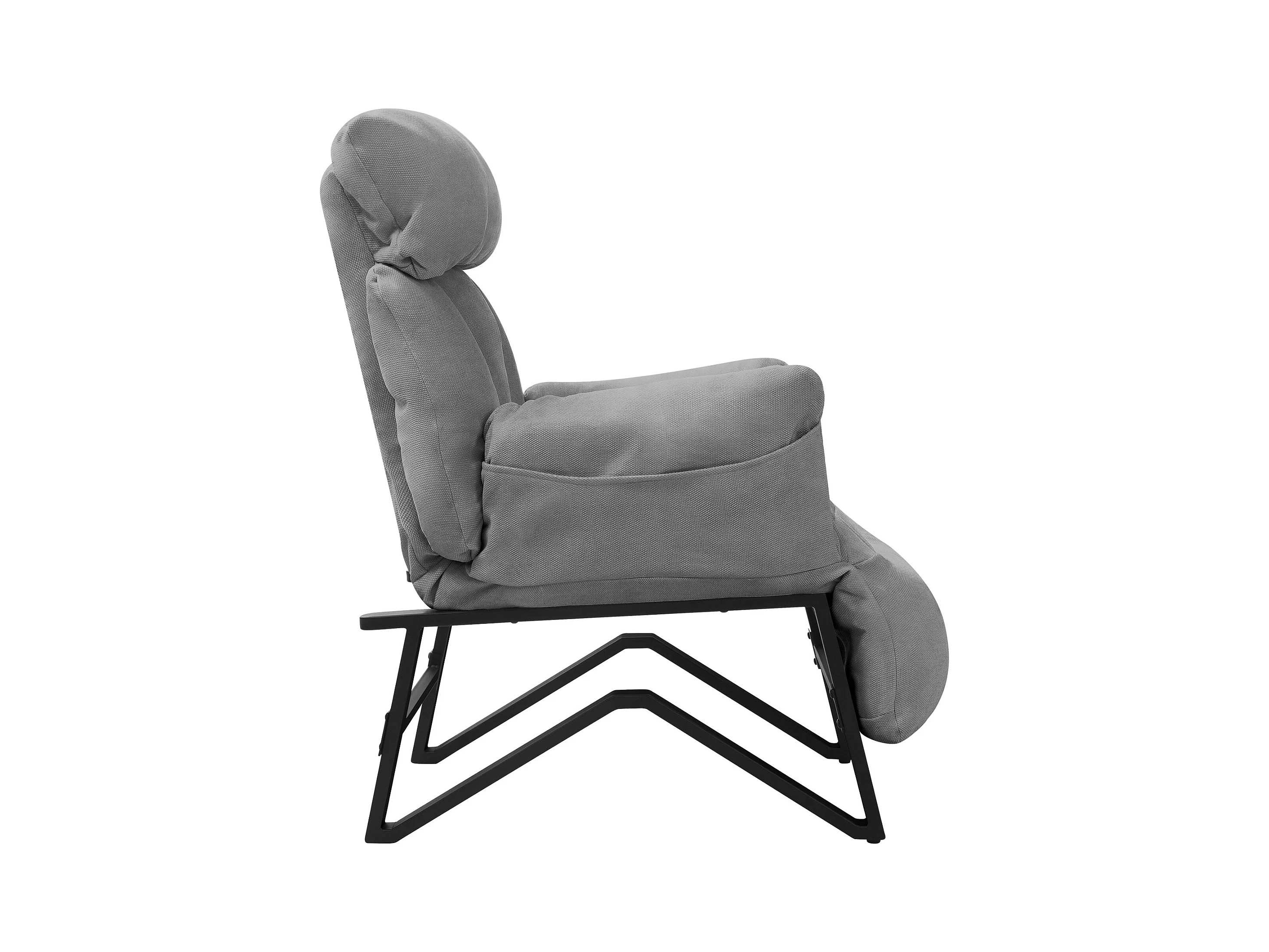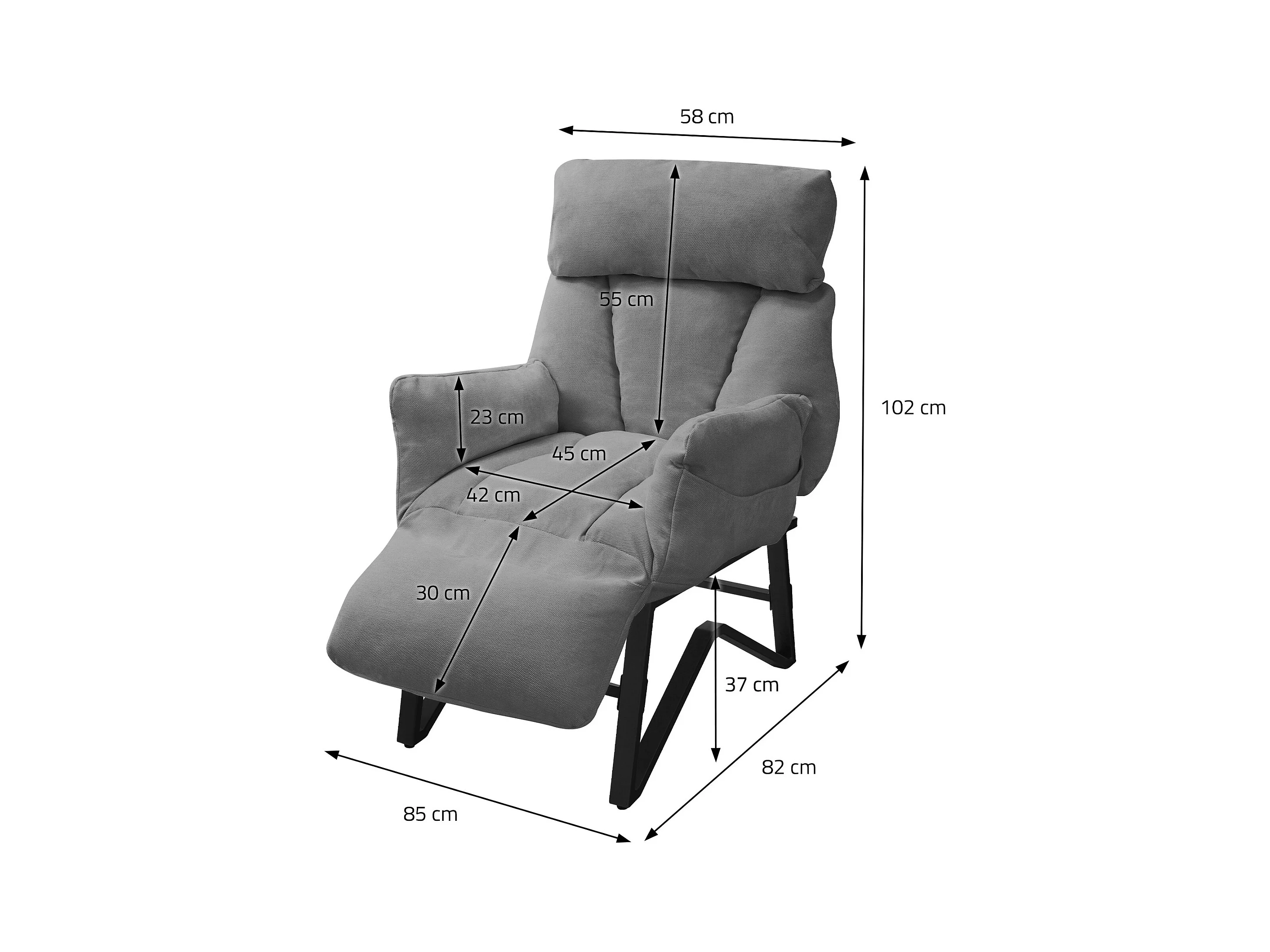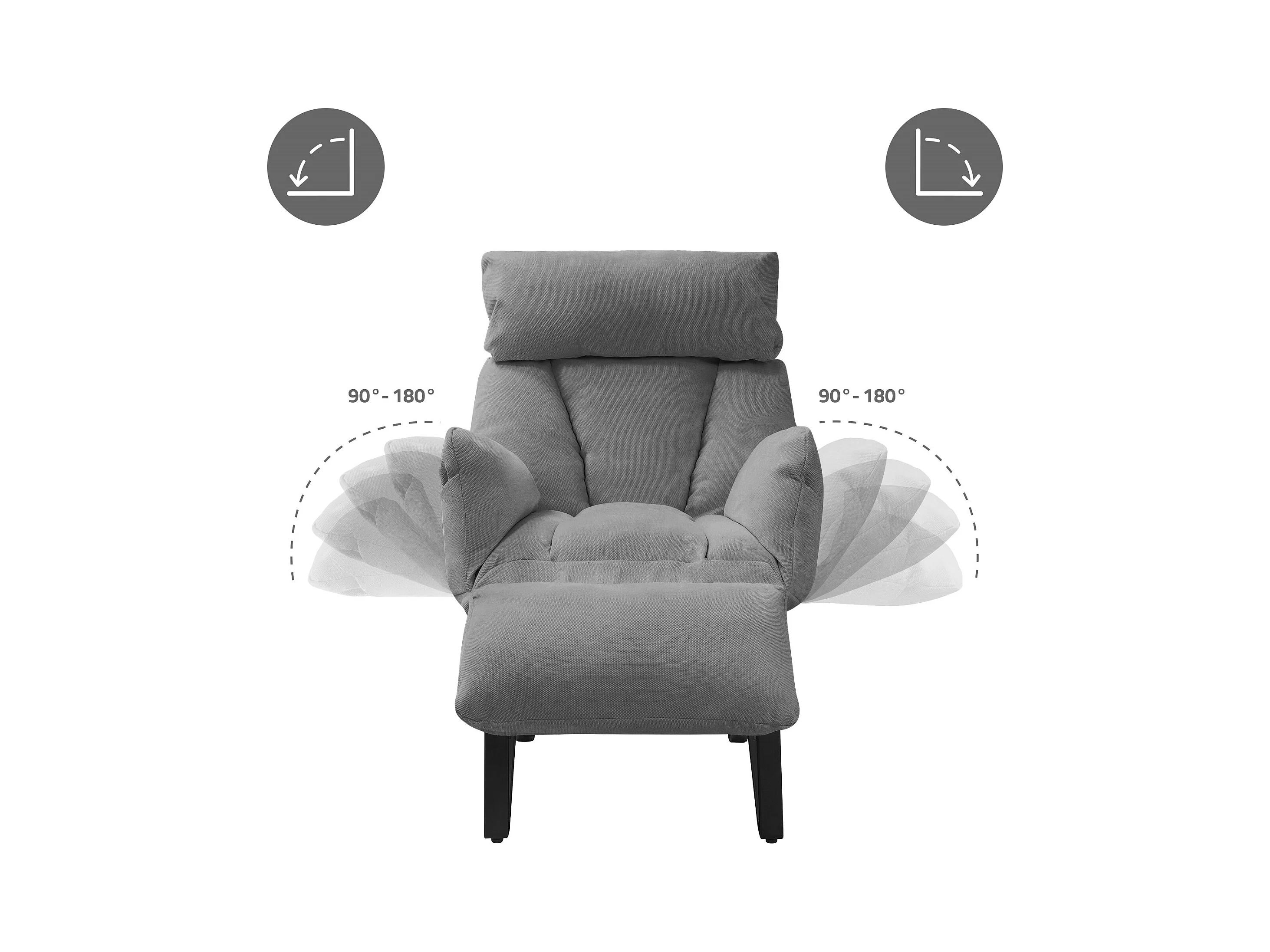 Fauteuil relax gris en lin structure acier dossier et repose-pied réglables accoudoirs rabattables siège inclinable rembourré chaise longue lecture