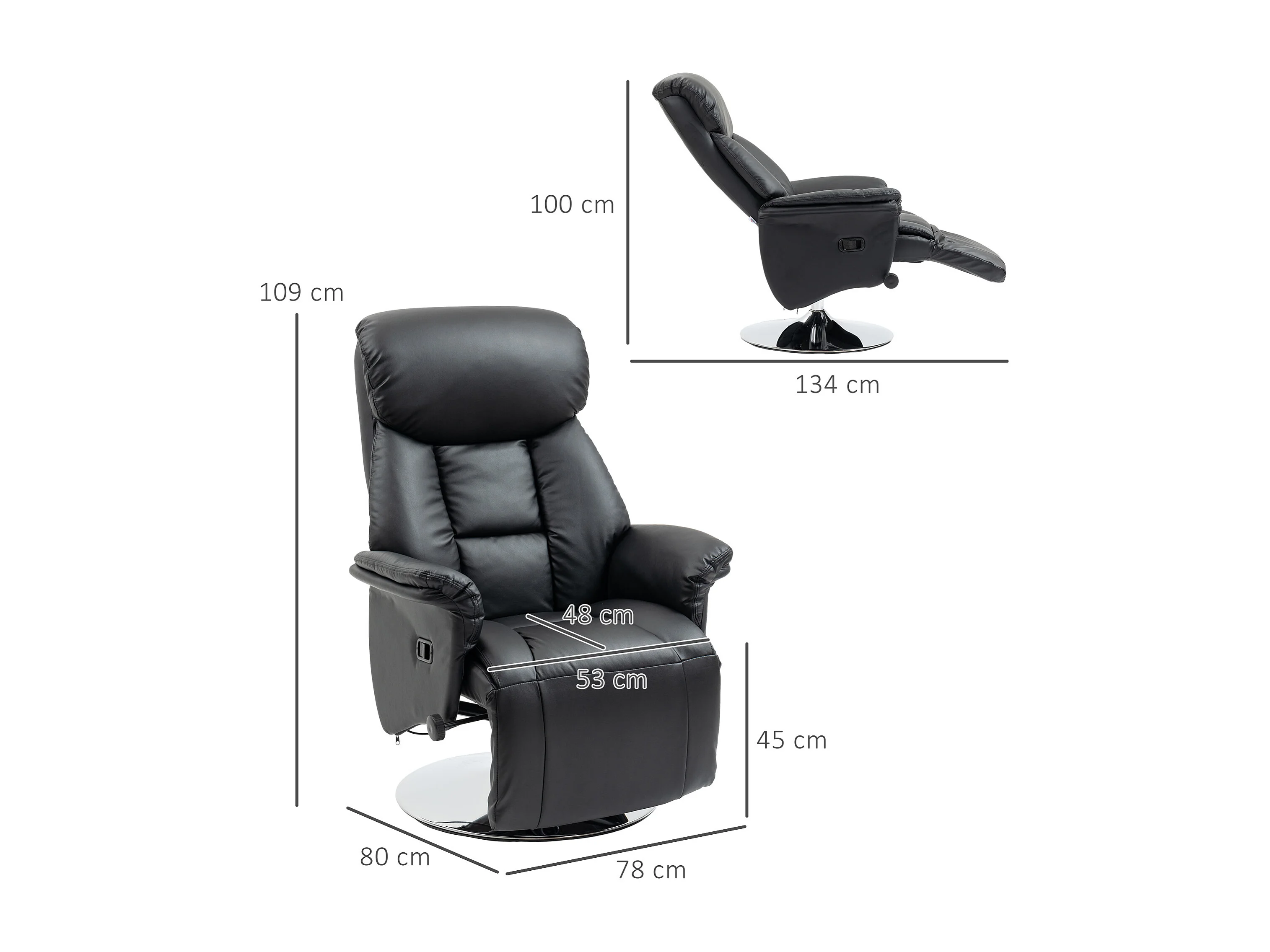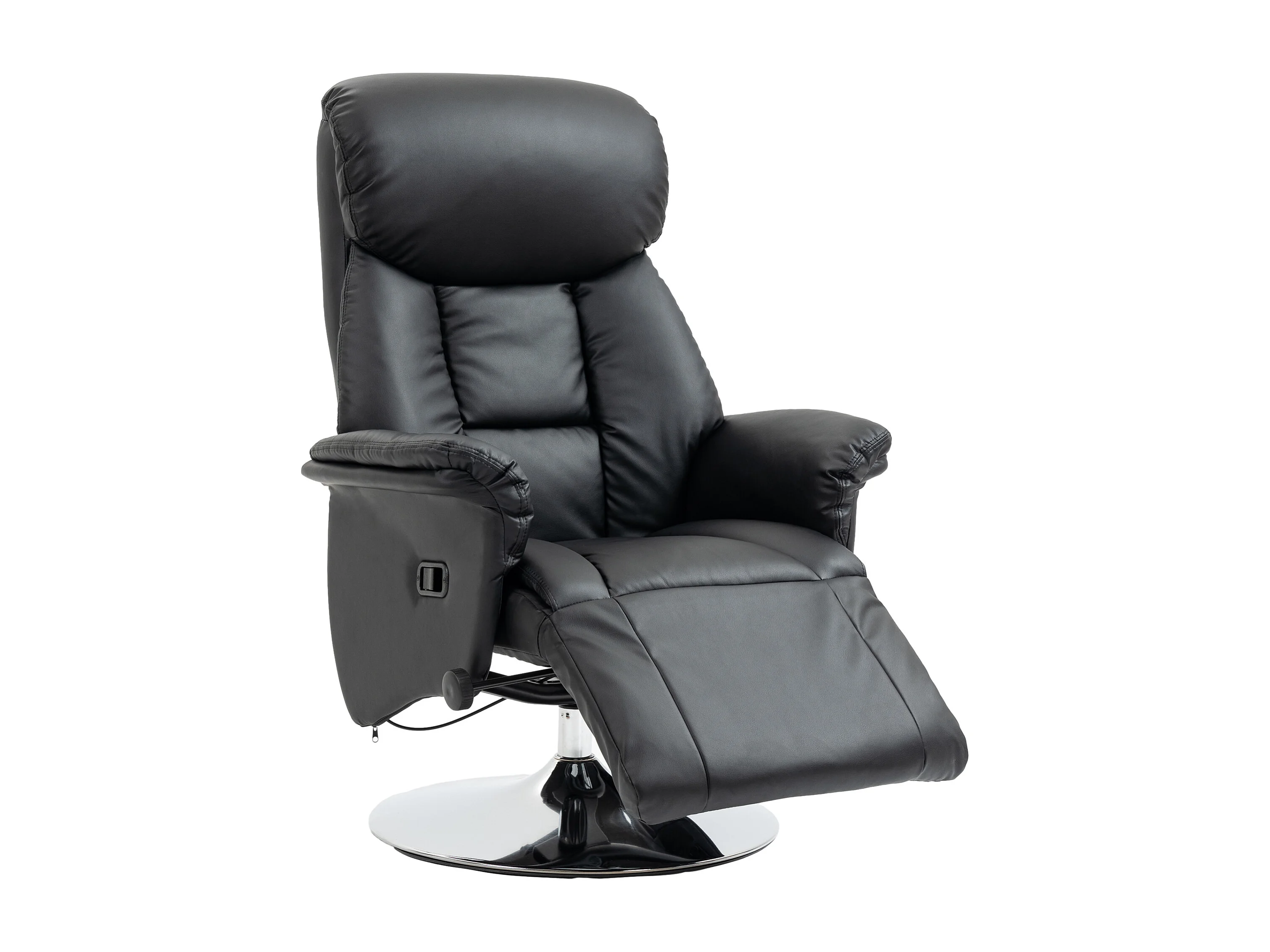 Fauteuil relax inclinable repose-pied réglable pivotant 360° piètement métal chromé revêtement synthétique noir
