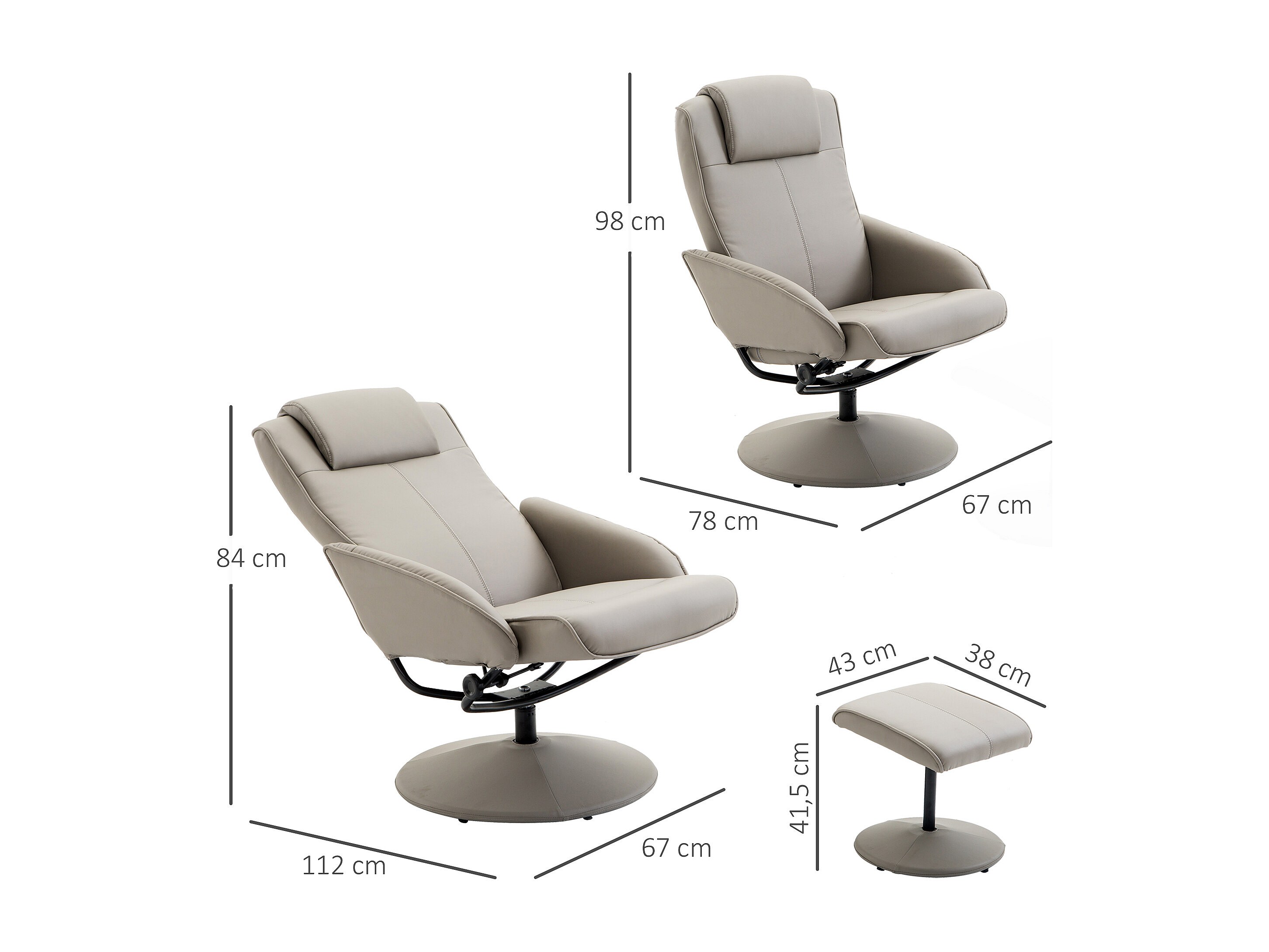 Fauteuil inclinable avec repose-pieds gris similicuir