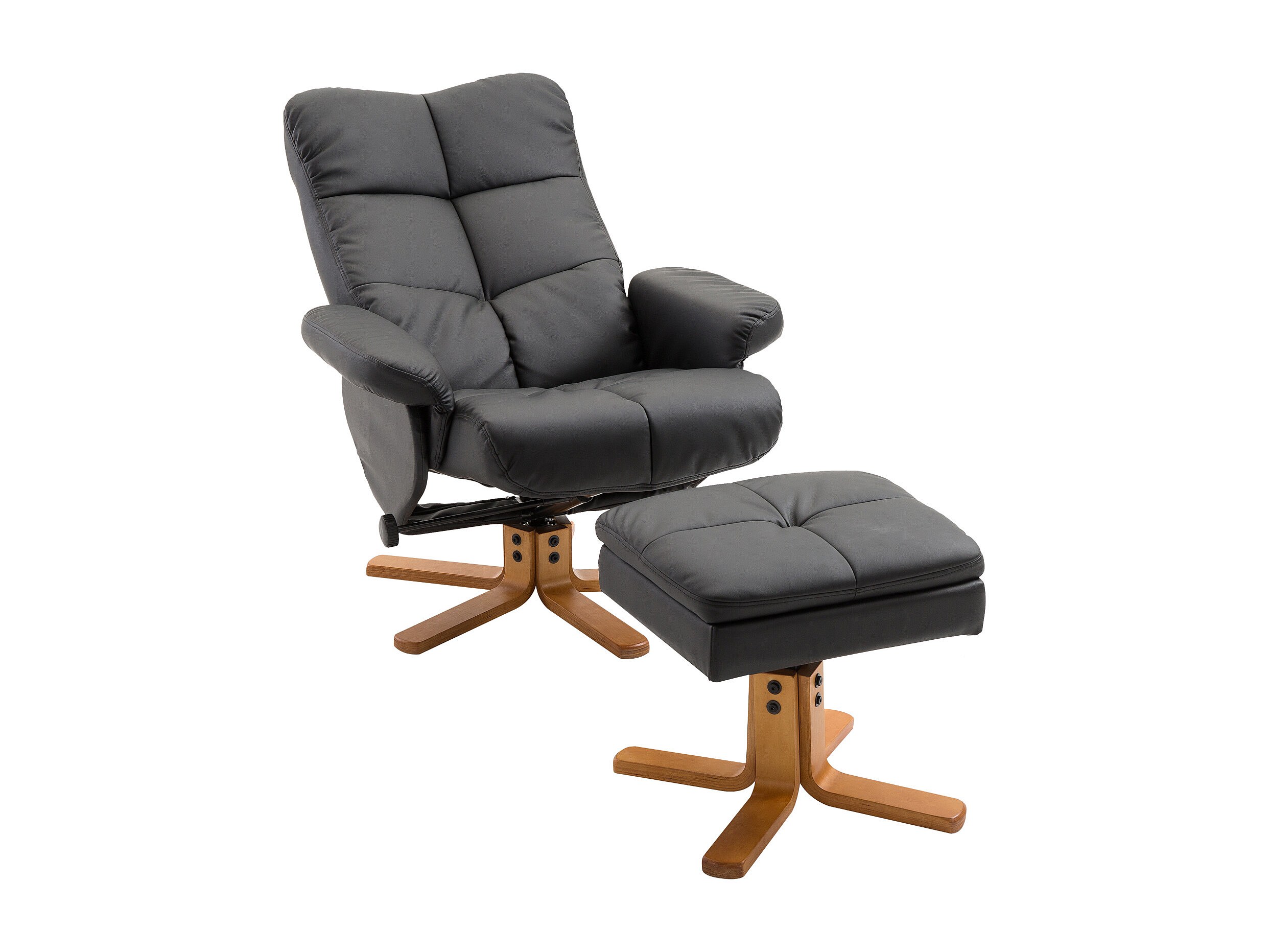 Fauteuil relax inclinable style contemporain repose-pieds coffre rangement revêtement synthétique acier bois noir