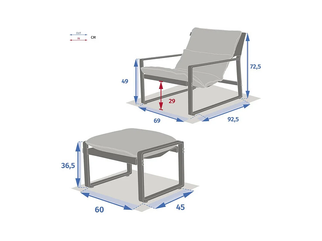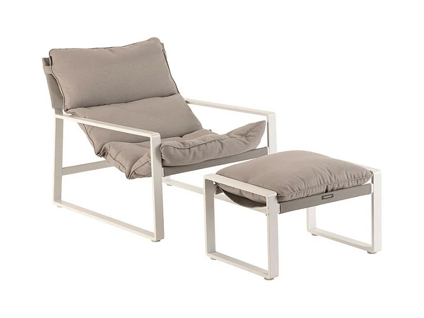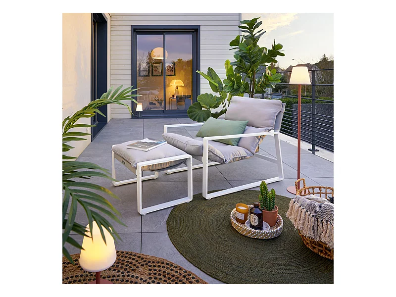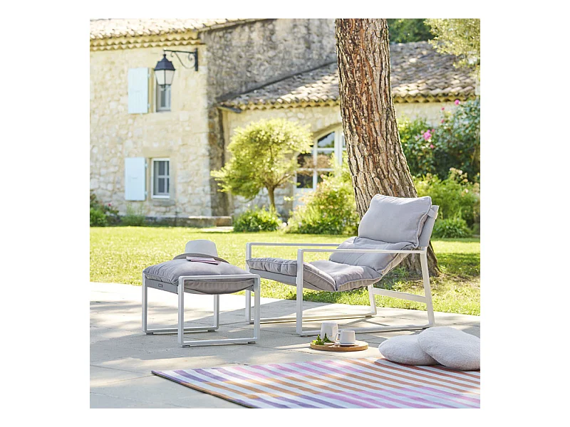 Fauteuil relax Lambinio avec repose pieds gris clair/blanc Hespéride