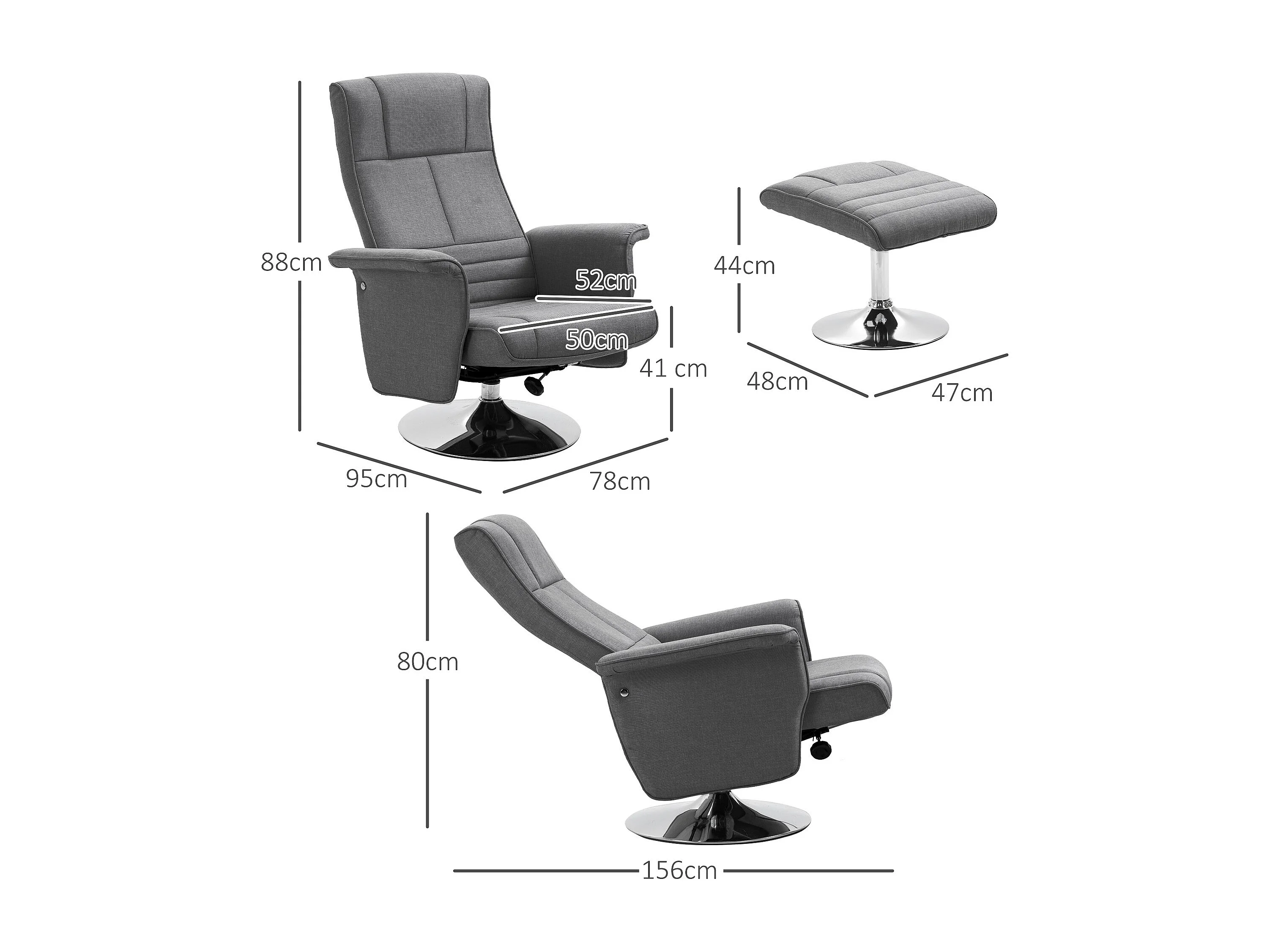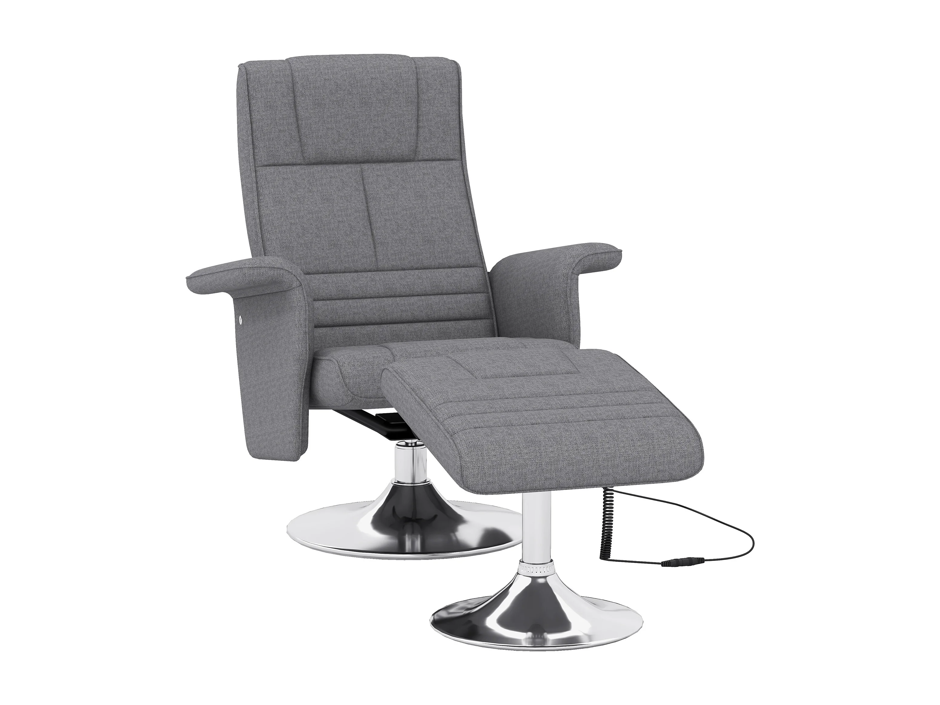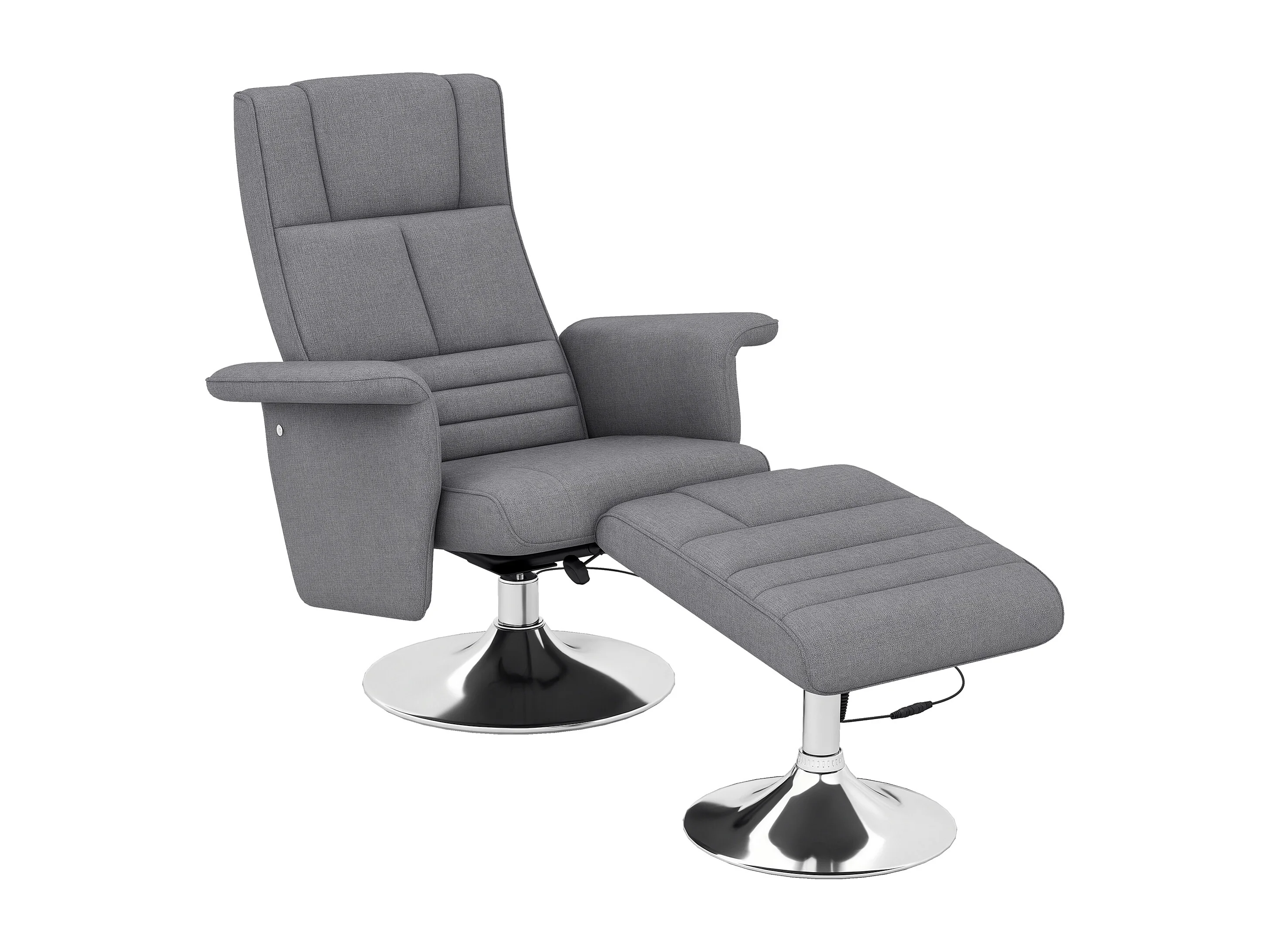 Fauteuil relax massant inclinable réglable avec repose-pied piètement acier chromé tissu gris