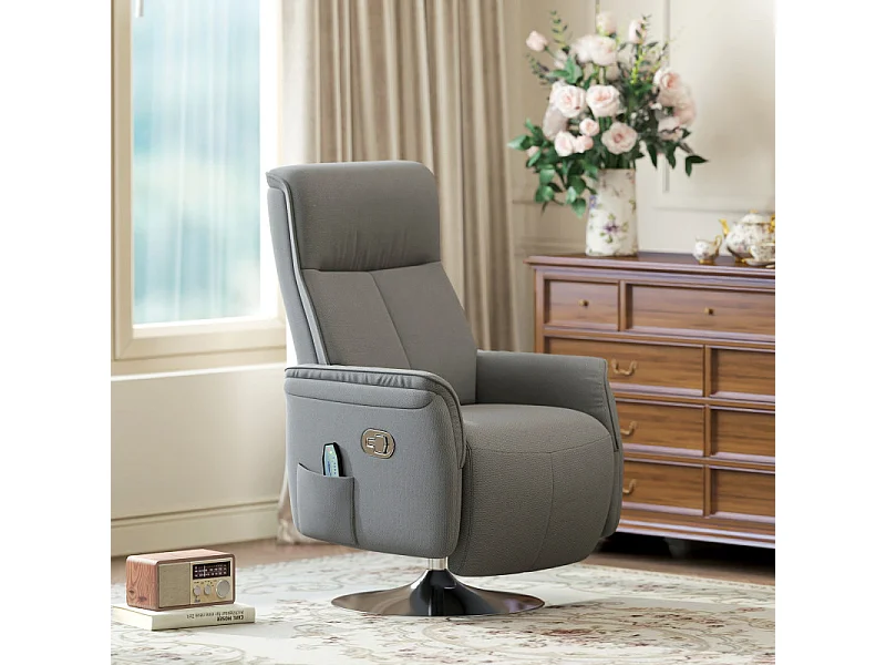 Fauteuil relax massant pivotant NUKIA tissu gris et acier chromé