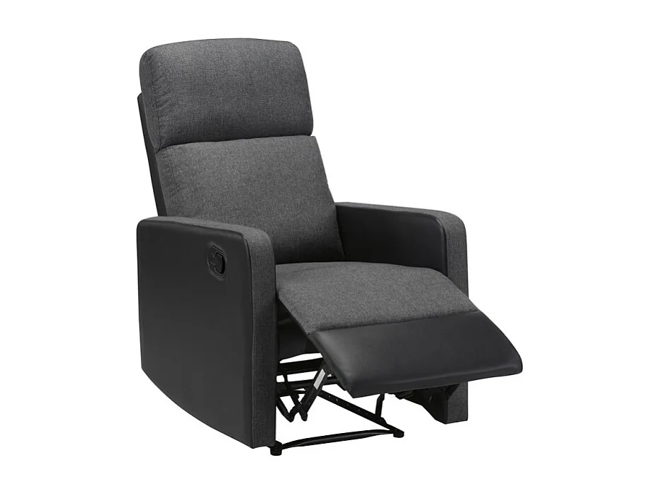 Fauteuil relax small LOVA en PU noir et tissu gris foncé