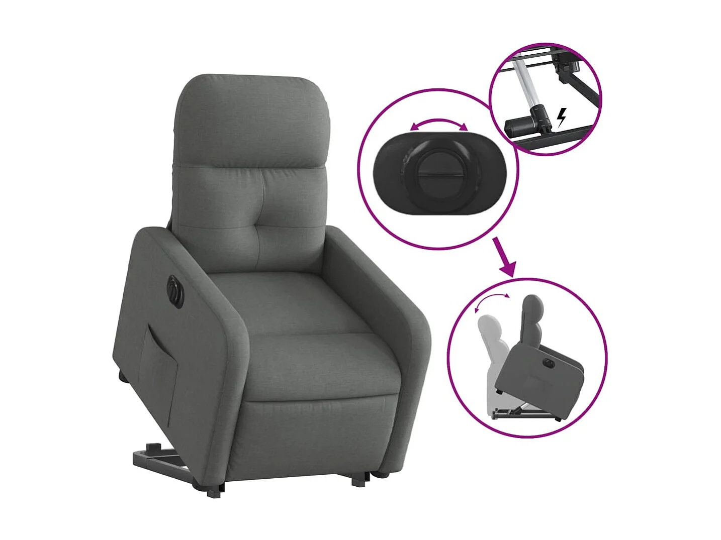 Fauteuil relax TV fonction tissu grise 66 x 89 x 96 cm DEC028349