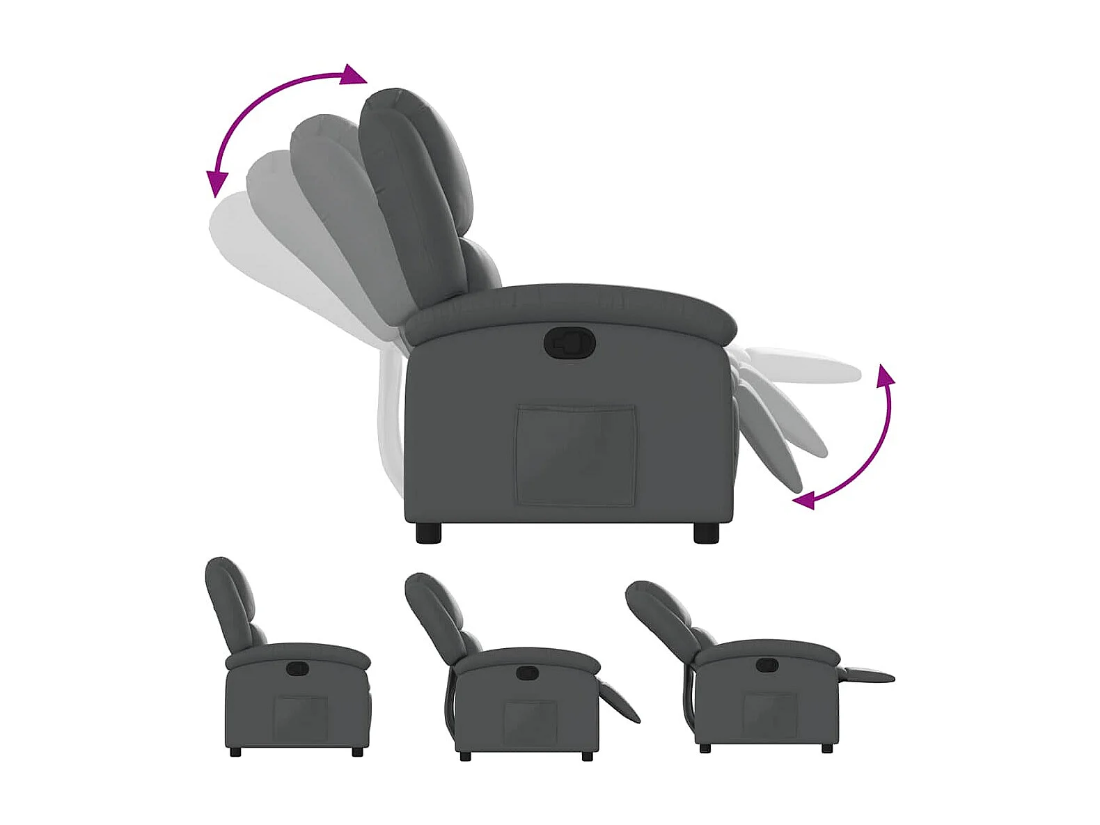 Fauteuil relax TV rembourrage PVC grise 71 x 86.5 x 99.5 cm DEC027967