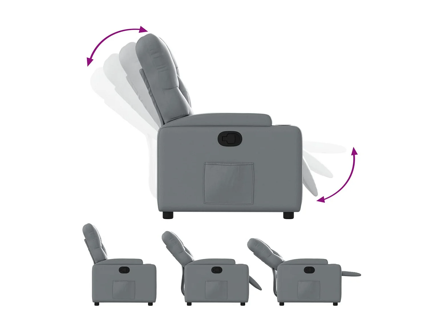 Fauteuil relax TV rembourrage PVC grise 74 x 86.5 x 93.5 cm DEC027968