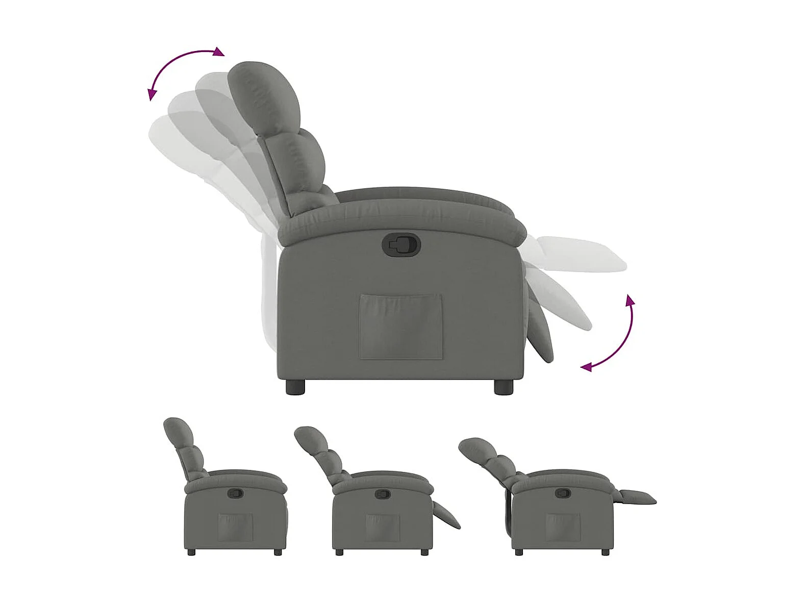Fauteuil relax TV rembourrage tissu grise 70 x 92 x 99.5 cm DEC027953