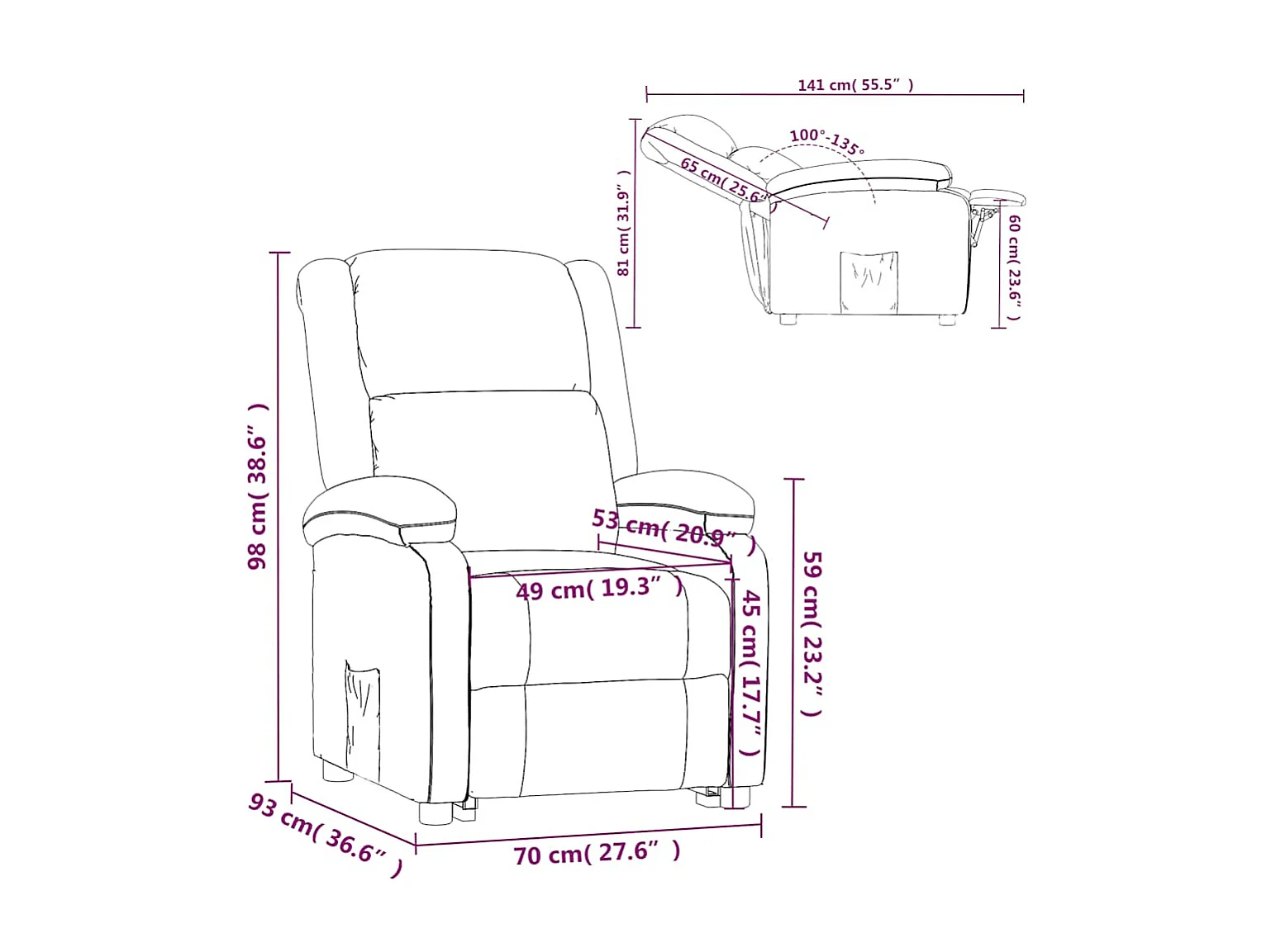 Fauteuil relax TV rembourrage tissu grise 70 x 93 x 98 cm DEC027940