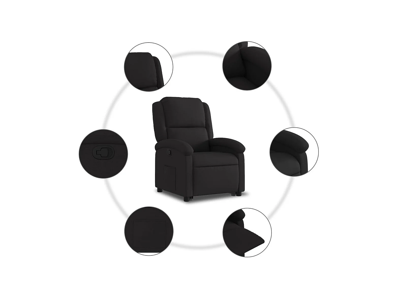 Fauteuil relax TV rembourrage tissu noire 71 x 86.5 x 99.5 cm DEC028111