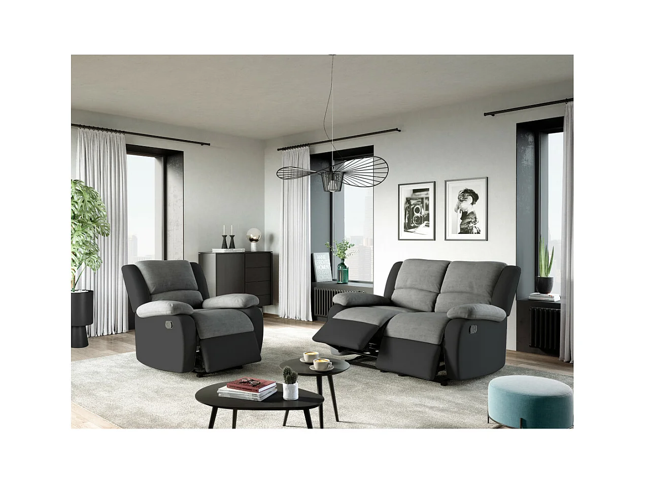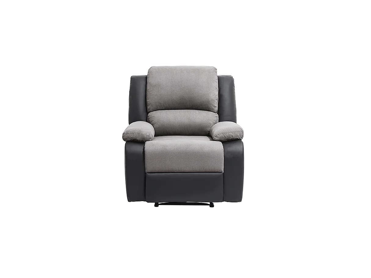 Fauteuil Relaxation 1 place Microfibre et Simili Léo - Gris et Noir - L88 x 93 x 96cm - Loungitude