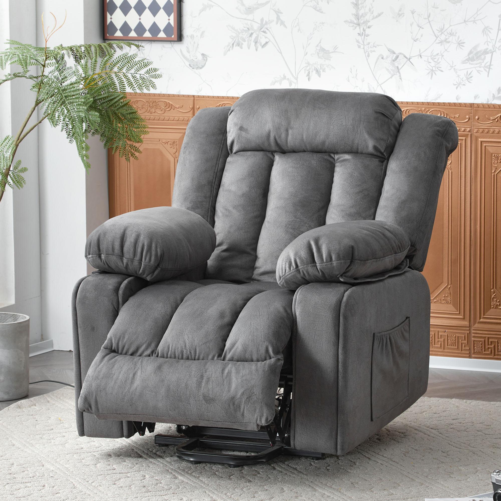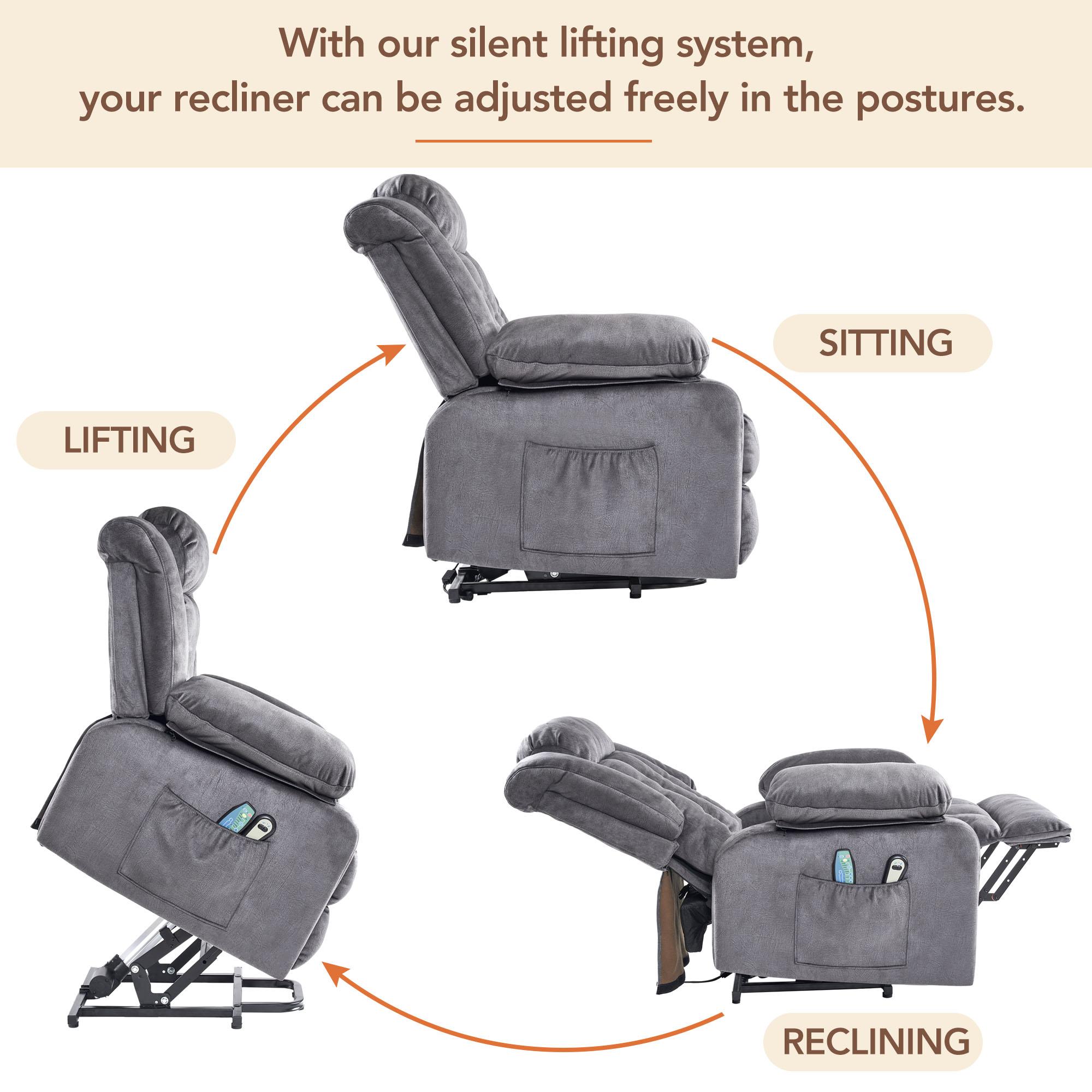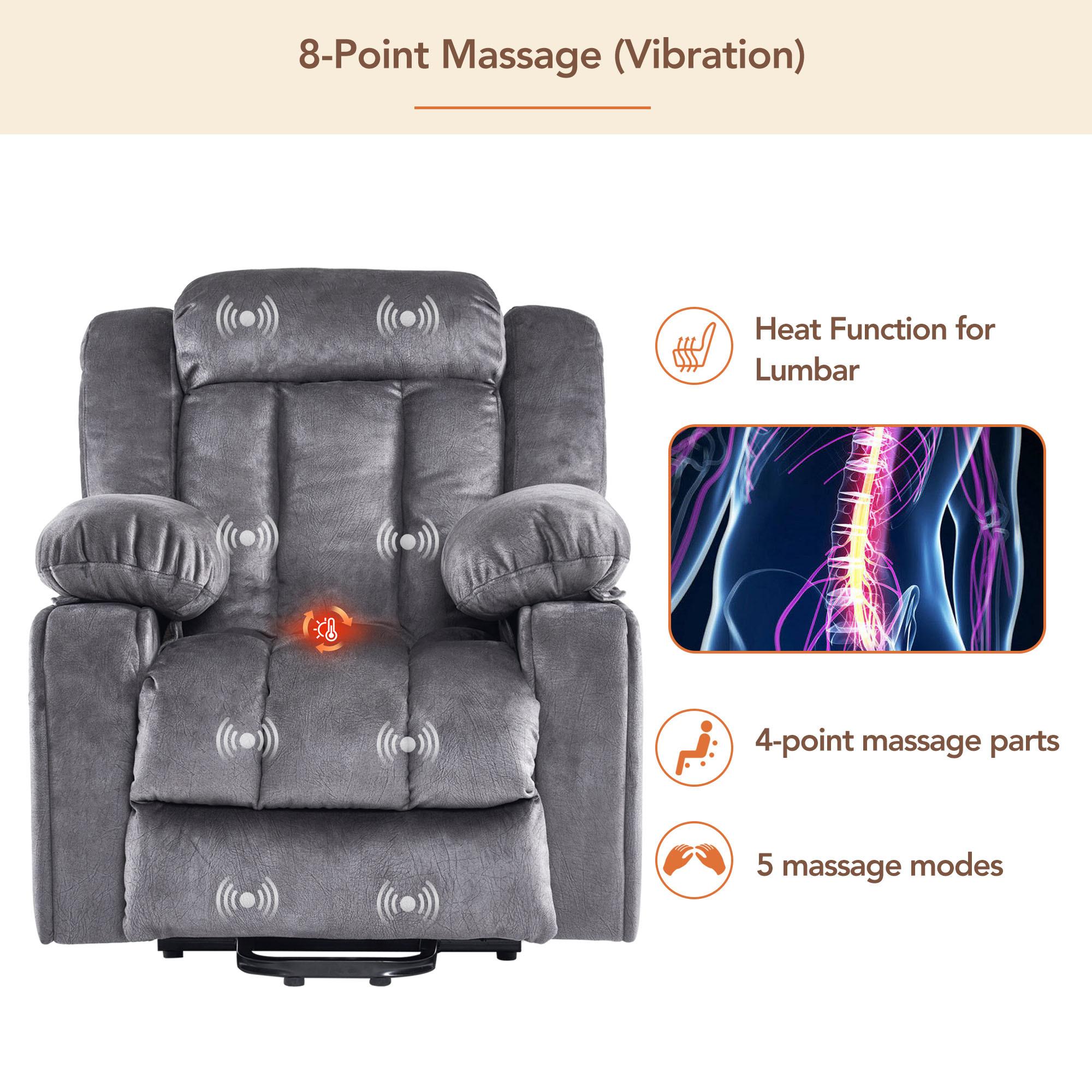 Fauteuil releveur électrique avec fonction massage en tissu - gris