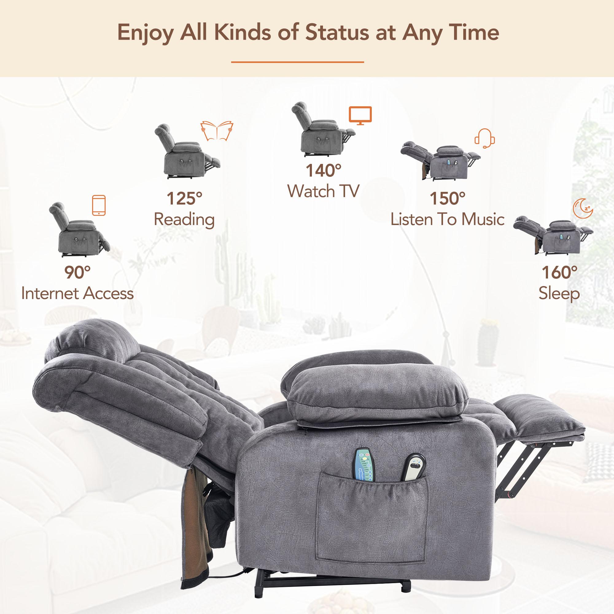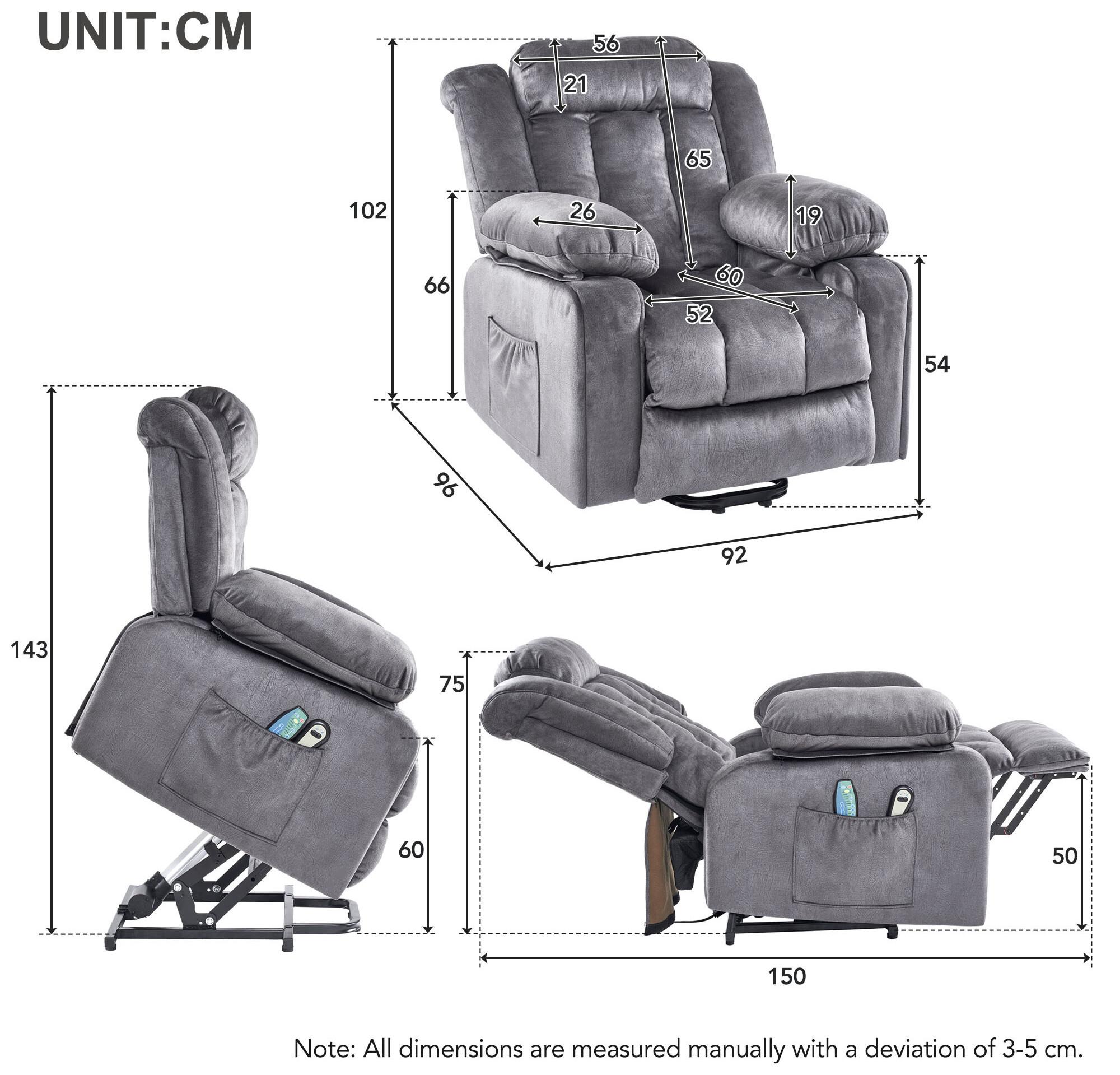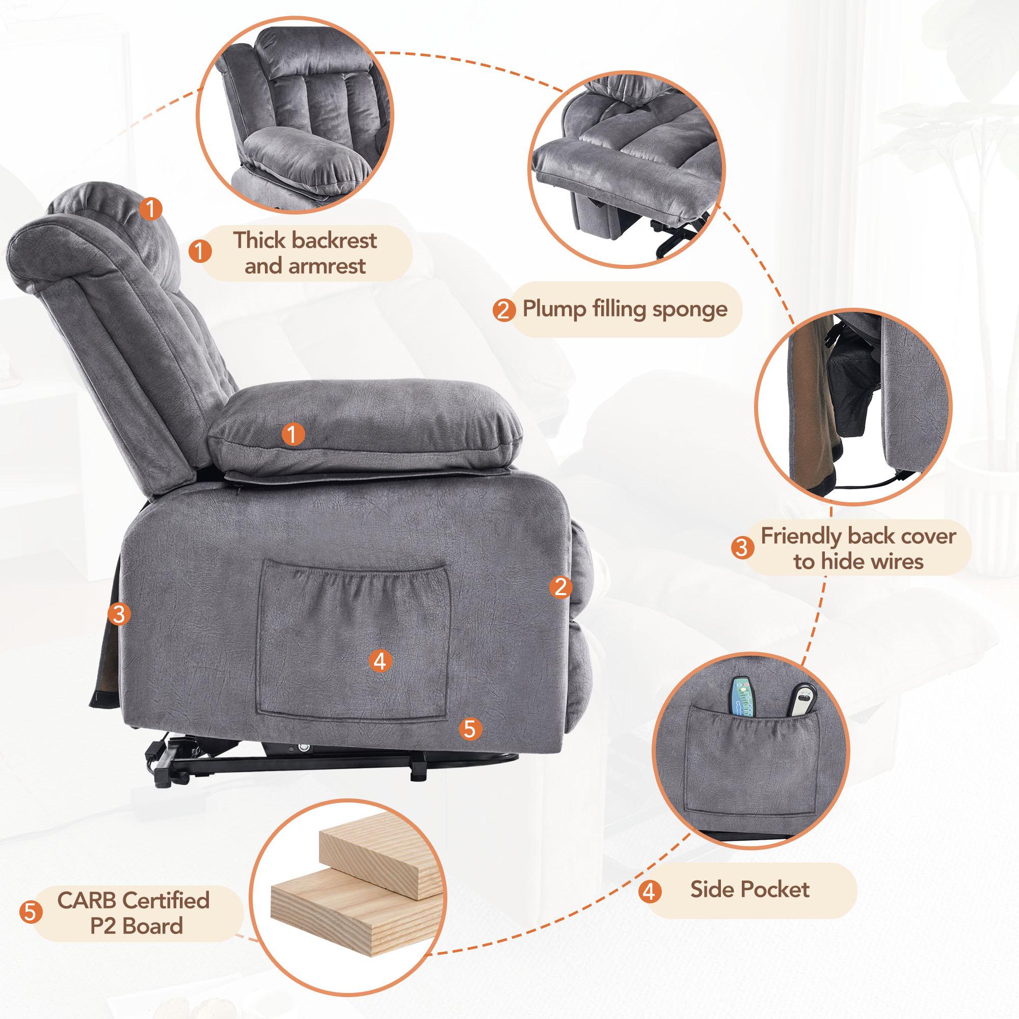 Fauteuil releveur électrique avec fonction massage en tissu - gris