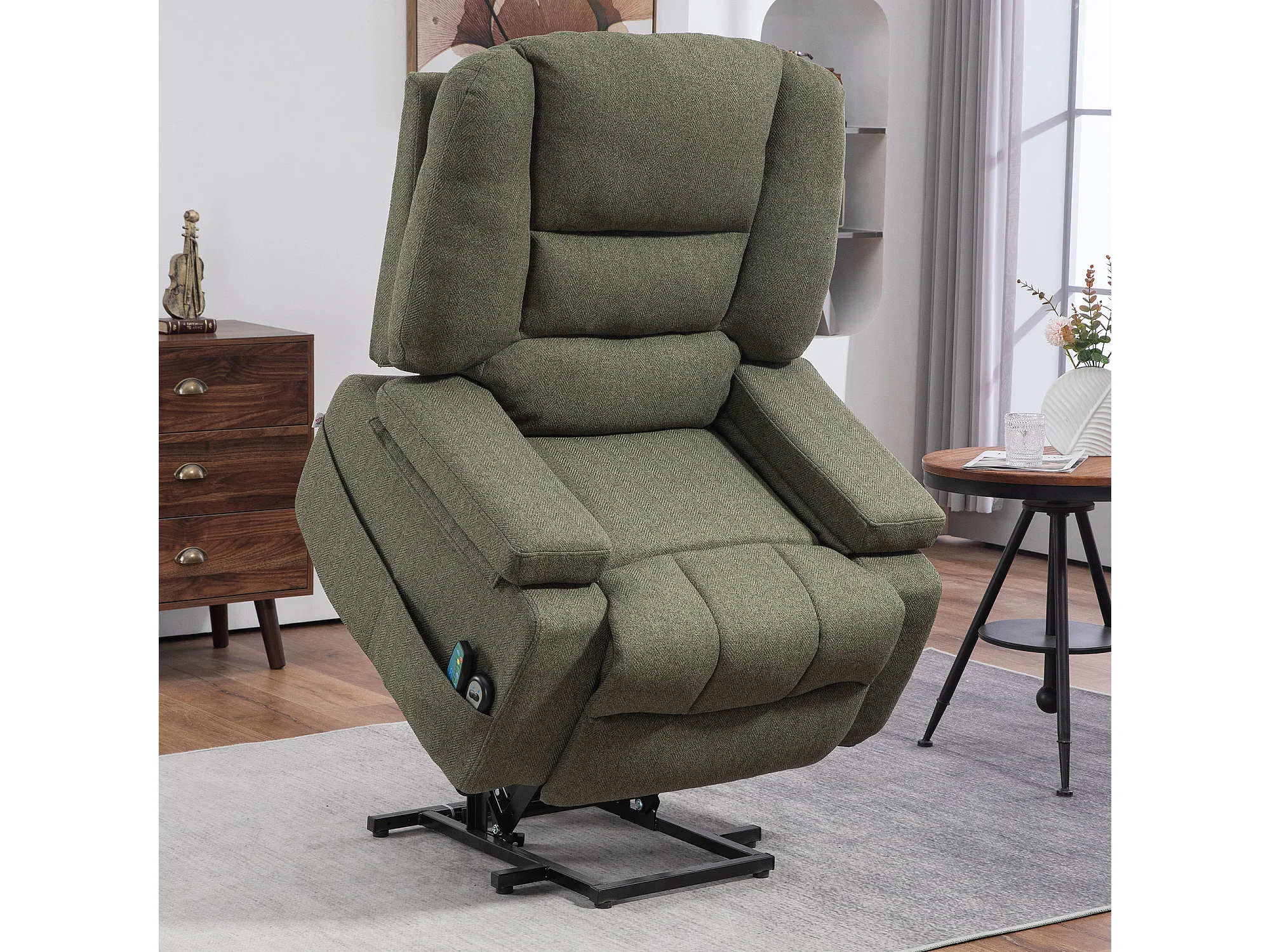 Fauteuil releveur électrique massant chauffant inclinable - repose-pied intégré, 2 télécommandes - tissu vert