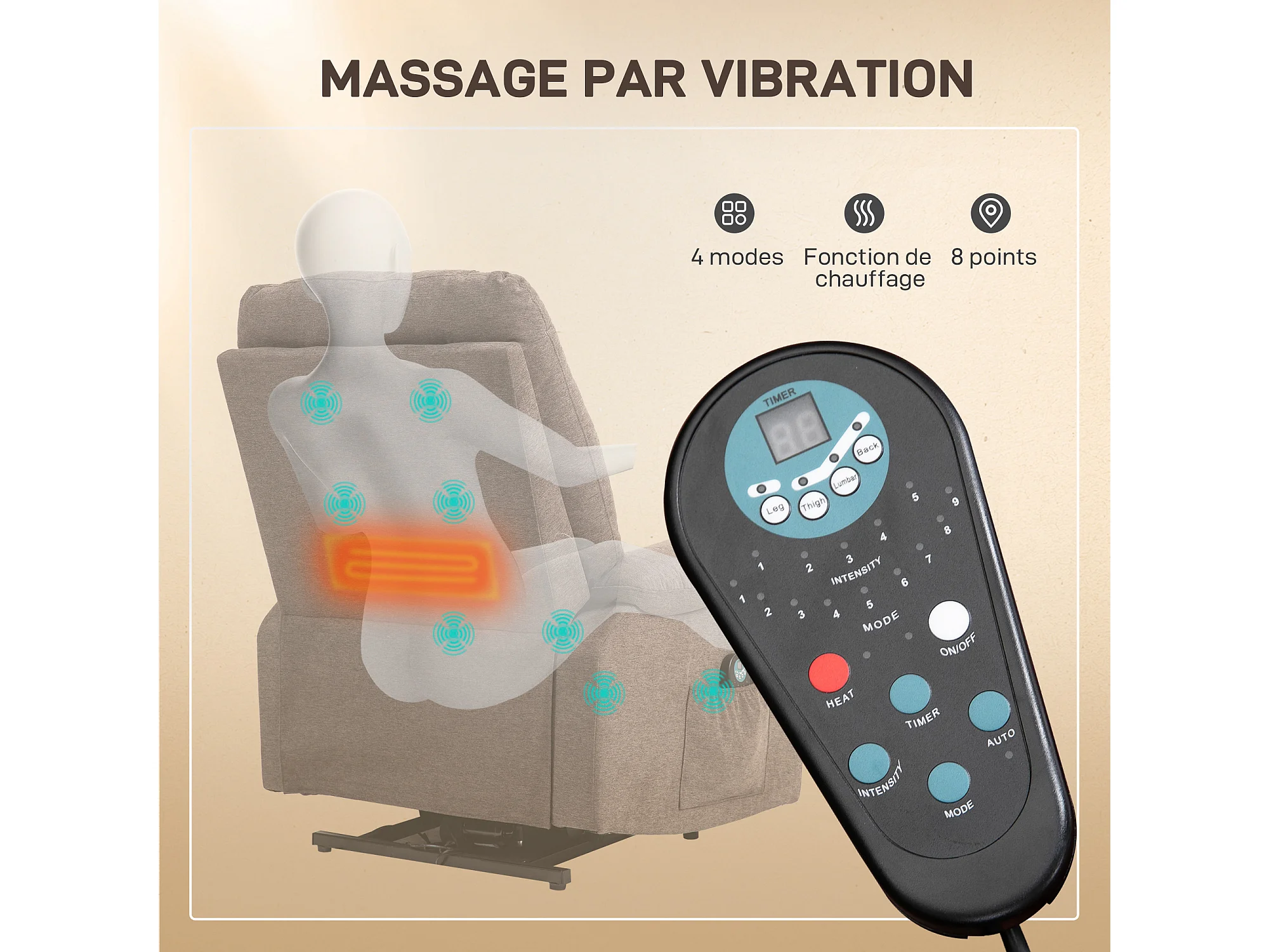 Fauteuil releveur massant chauffant inclinable - télécommande 4 modes 8 points - tissu marron chiné