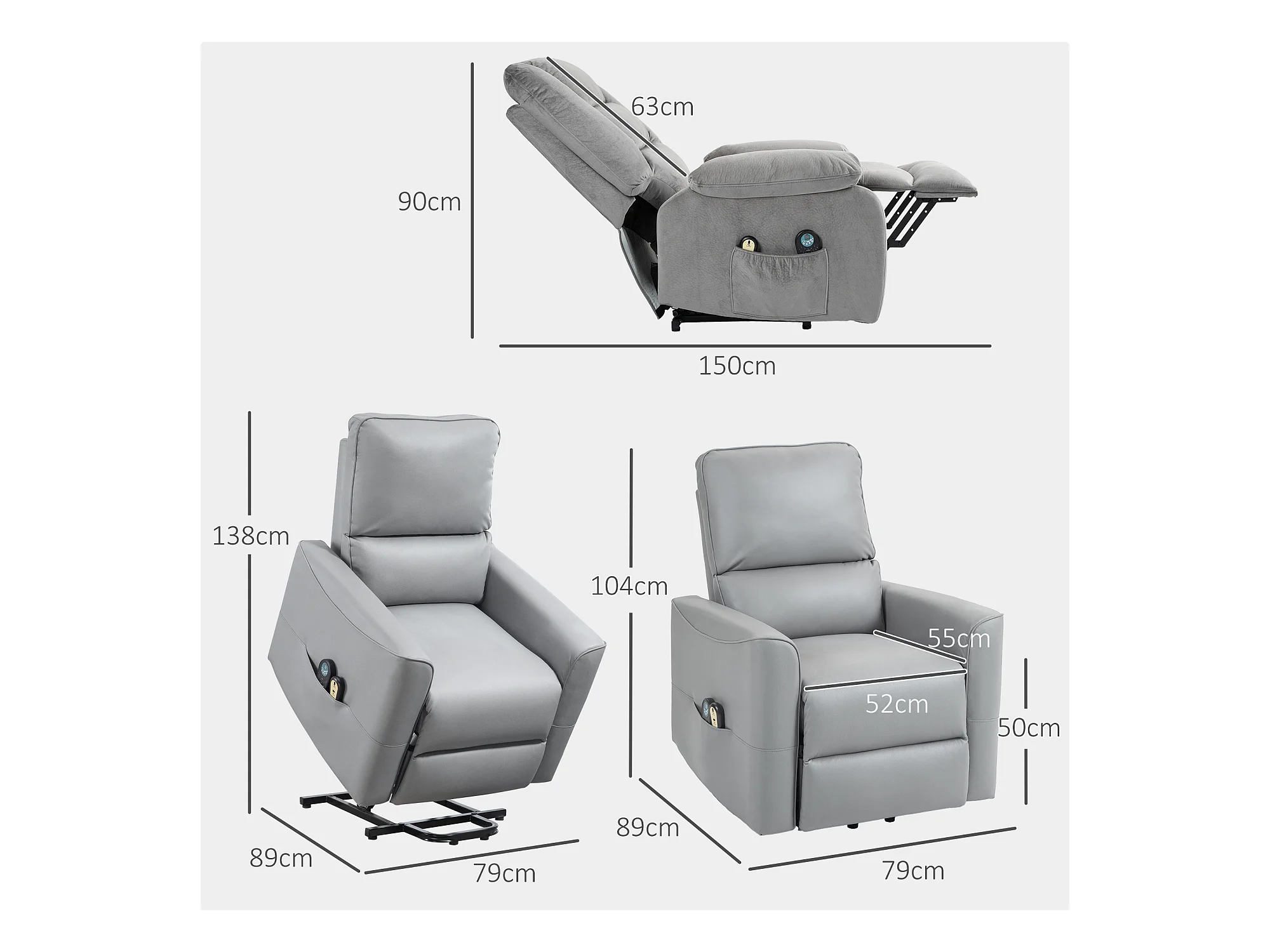 Fauteuil releveur massant chauffant inclinable - télécommande - tissu technique gris clair