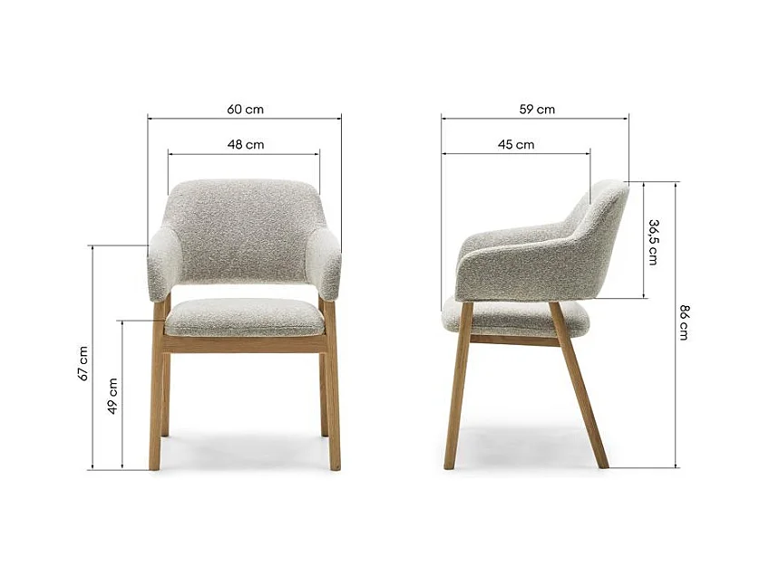 Fauteuil rembourré 86x60x59 cm gris clair LORA
