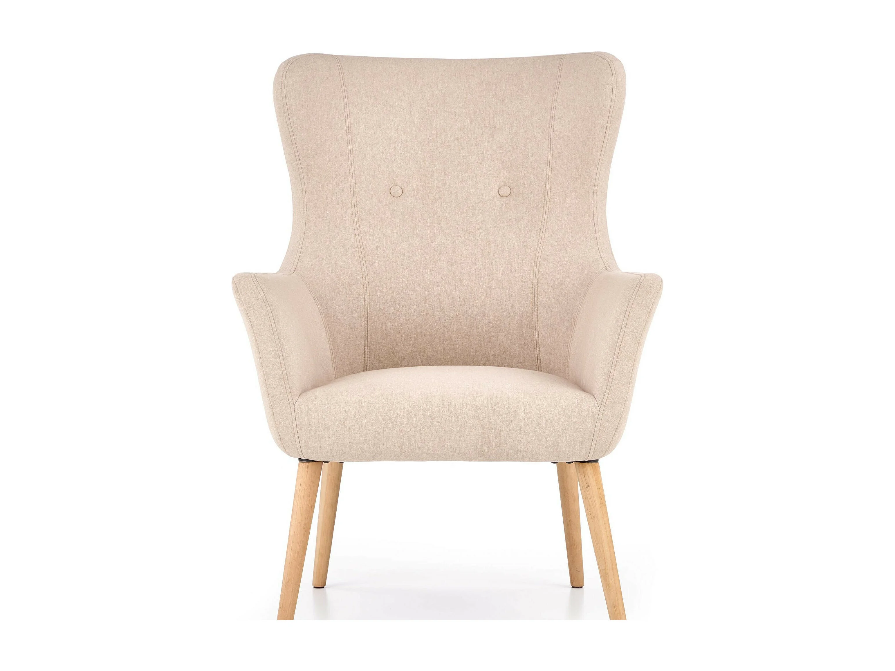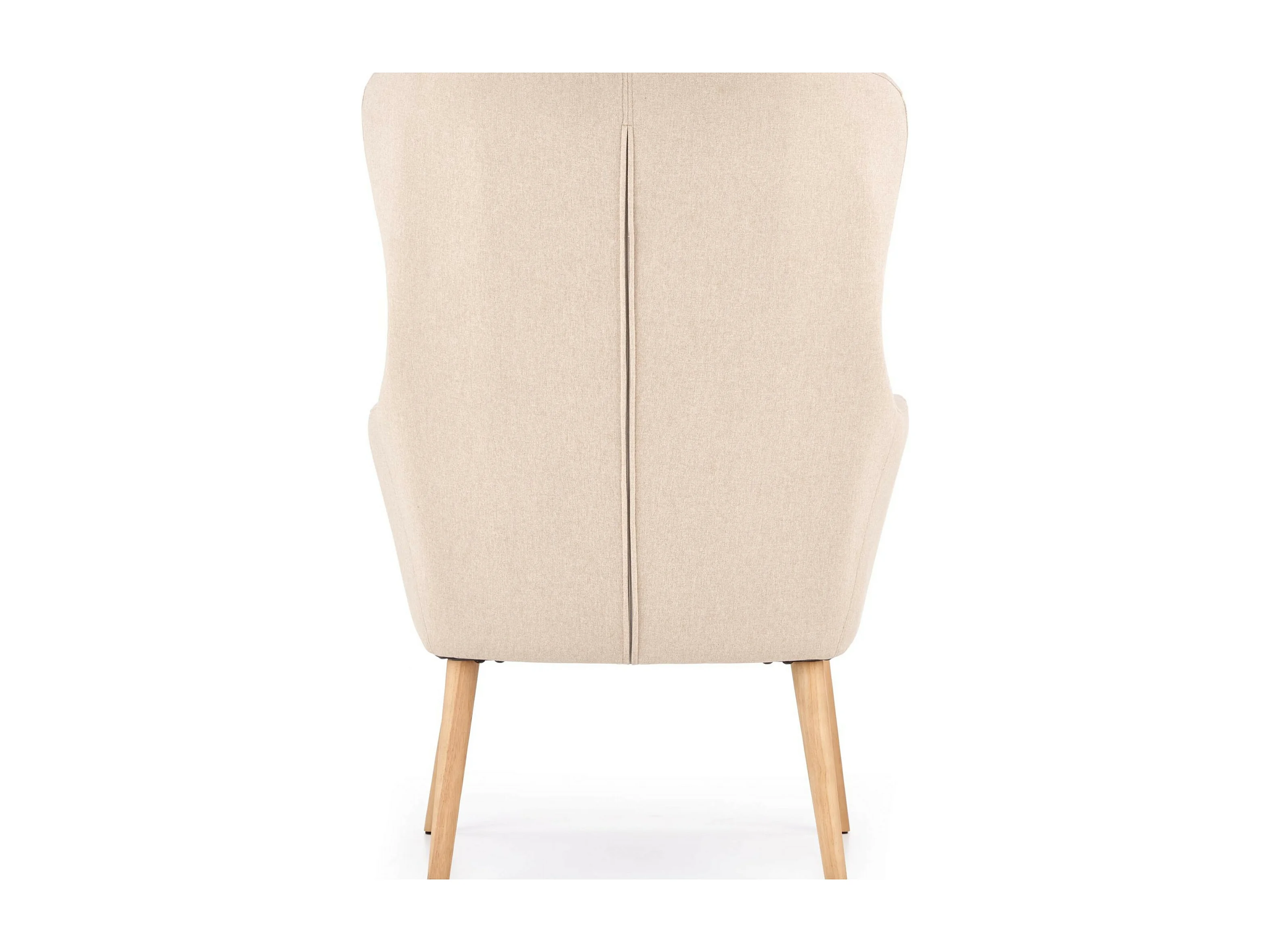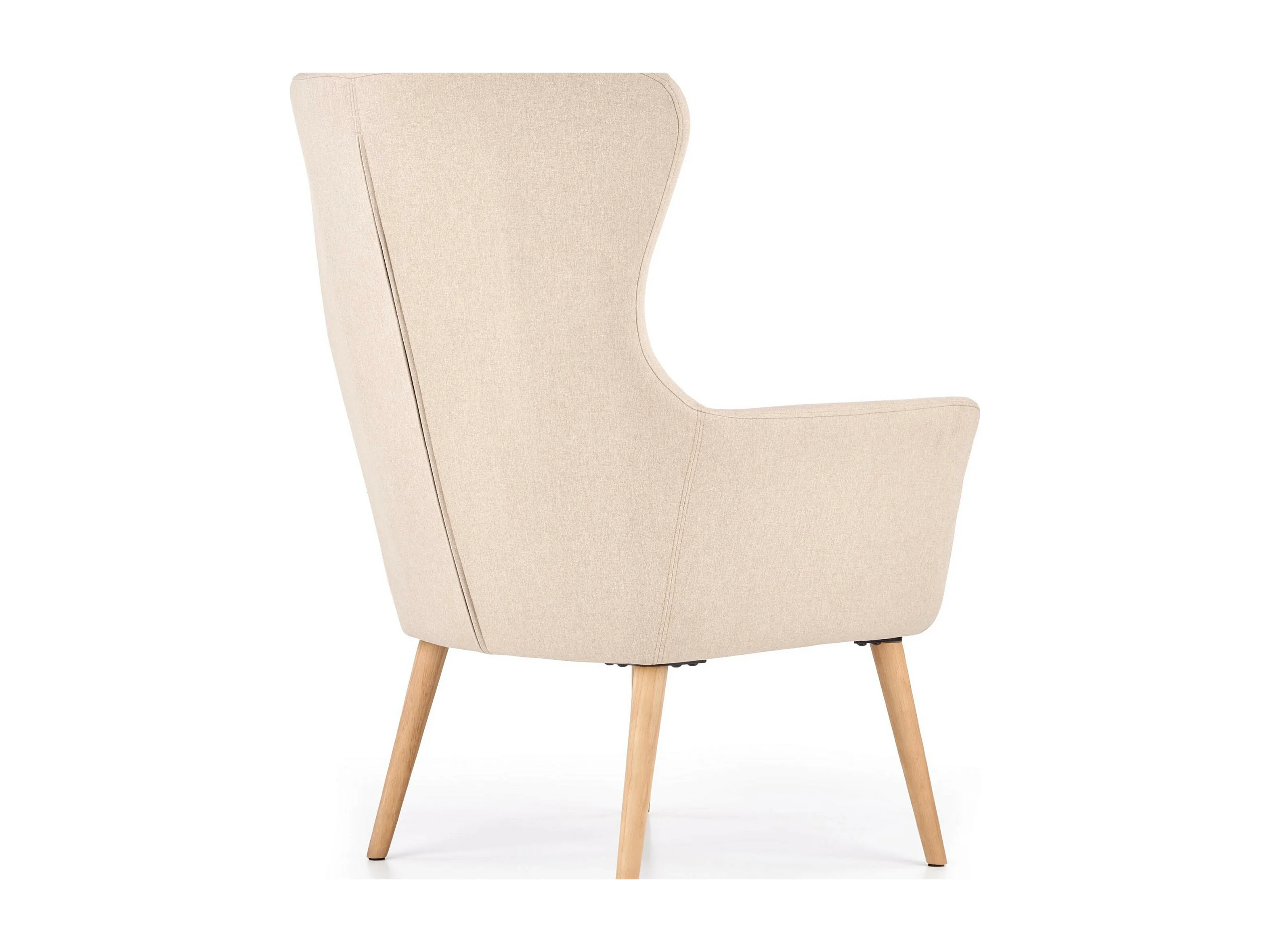 Fauteuil rembourré en tissu beige avec dossier haut et pieds en bois de caoutchouc WISH