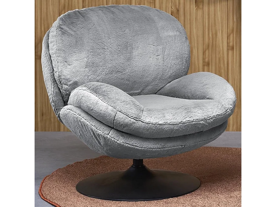Fauteuil rembourré gris en tissu avec piètement pivotant MARIA