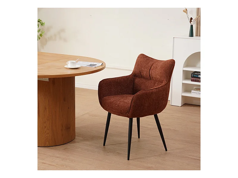 Fauteuil repas Lucas tissu terracotta pieds métal