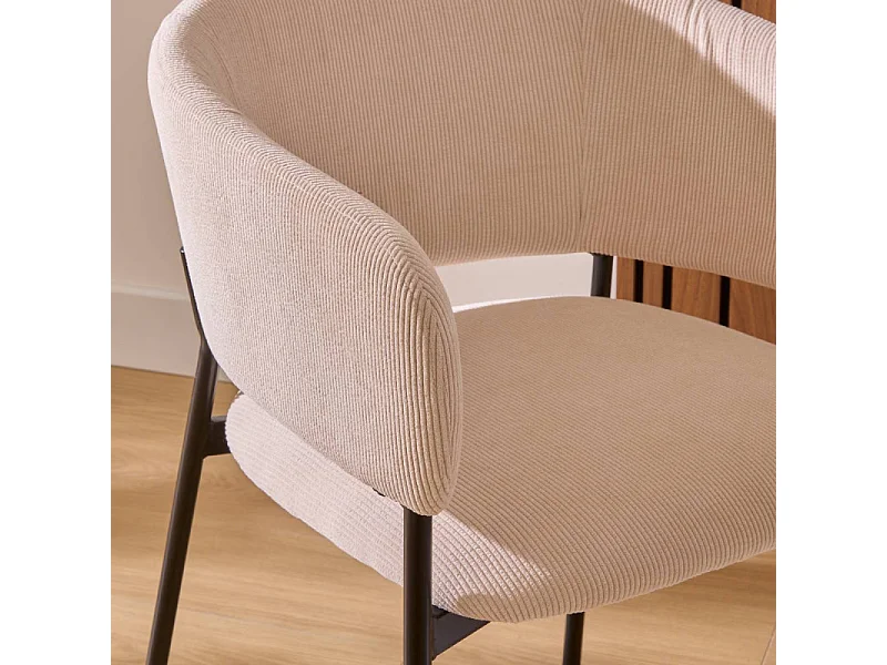 Fauteuil repas velours côtelé beige Solea Atmosphera