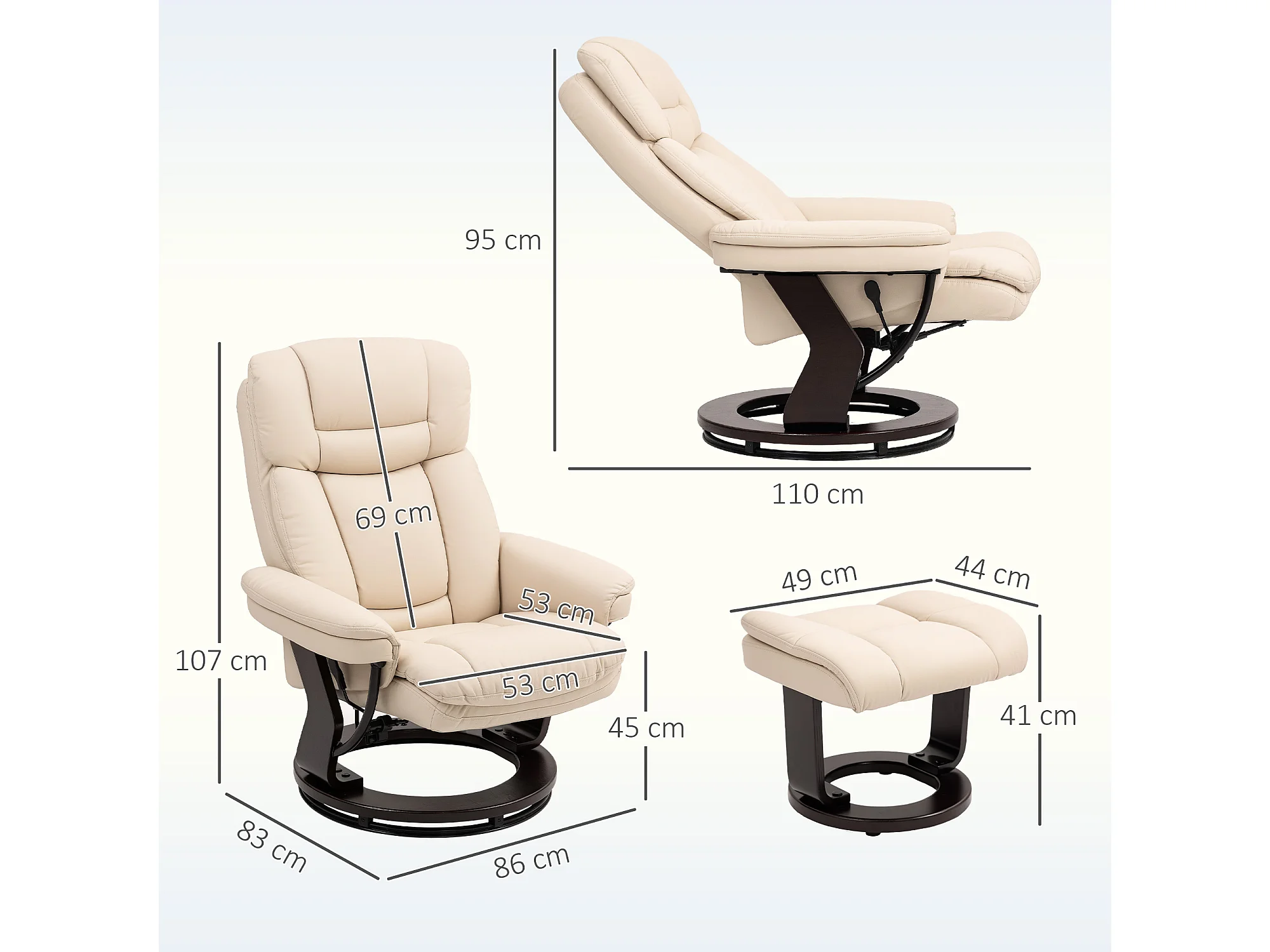 Fauteuil repose-pieds assorti inclinable pivotant piètement effet bois wengé revêtement synthétique beige clair