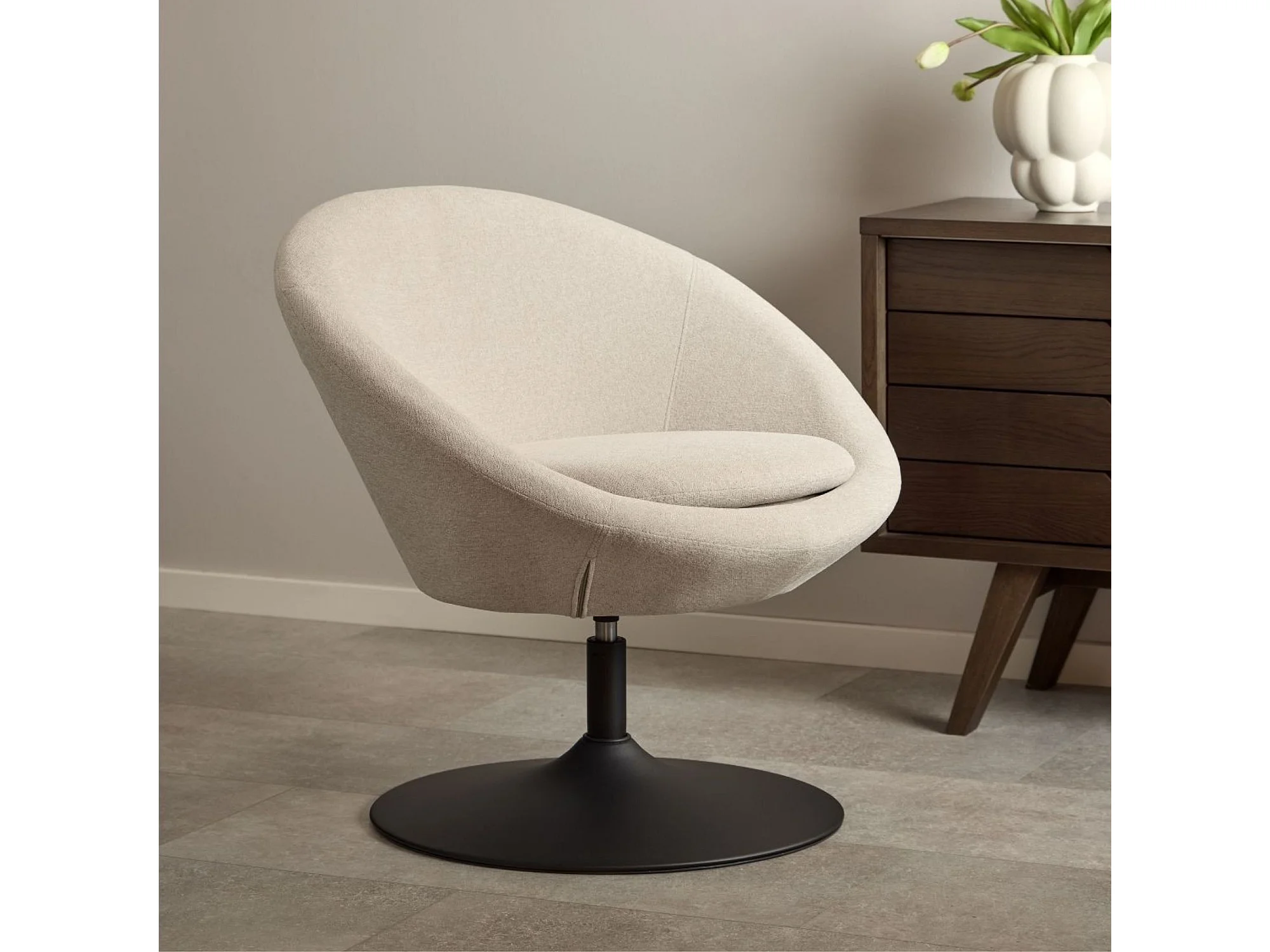 Fauteuil rond organique pivotant en tissu beige - NAEL