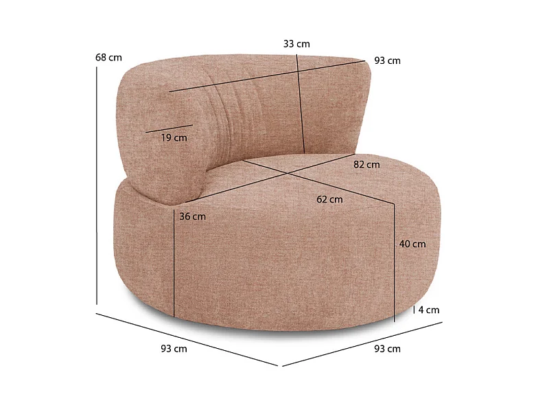 Fauteuil rond pivotant 360° en tissu chiné bois de rose - TALIA