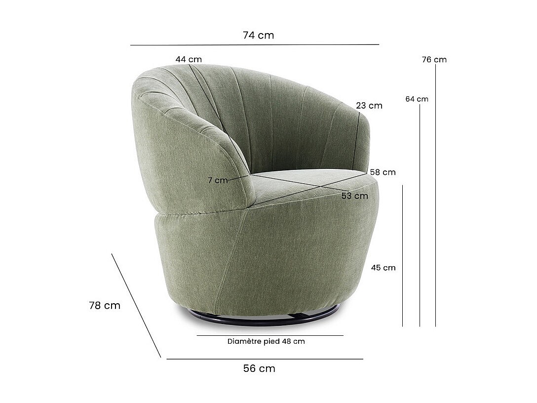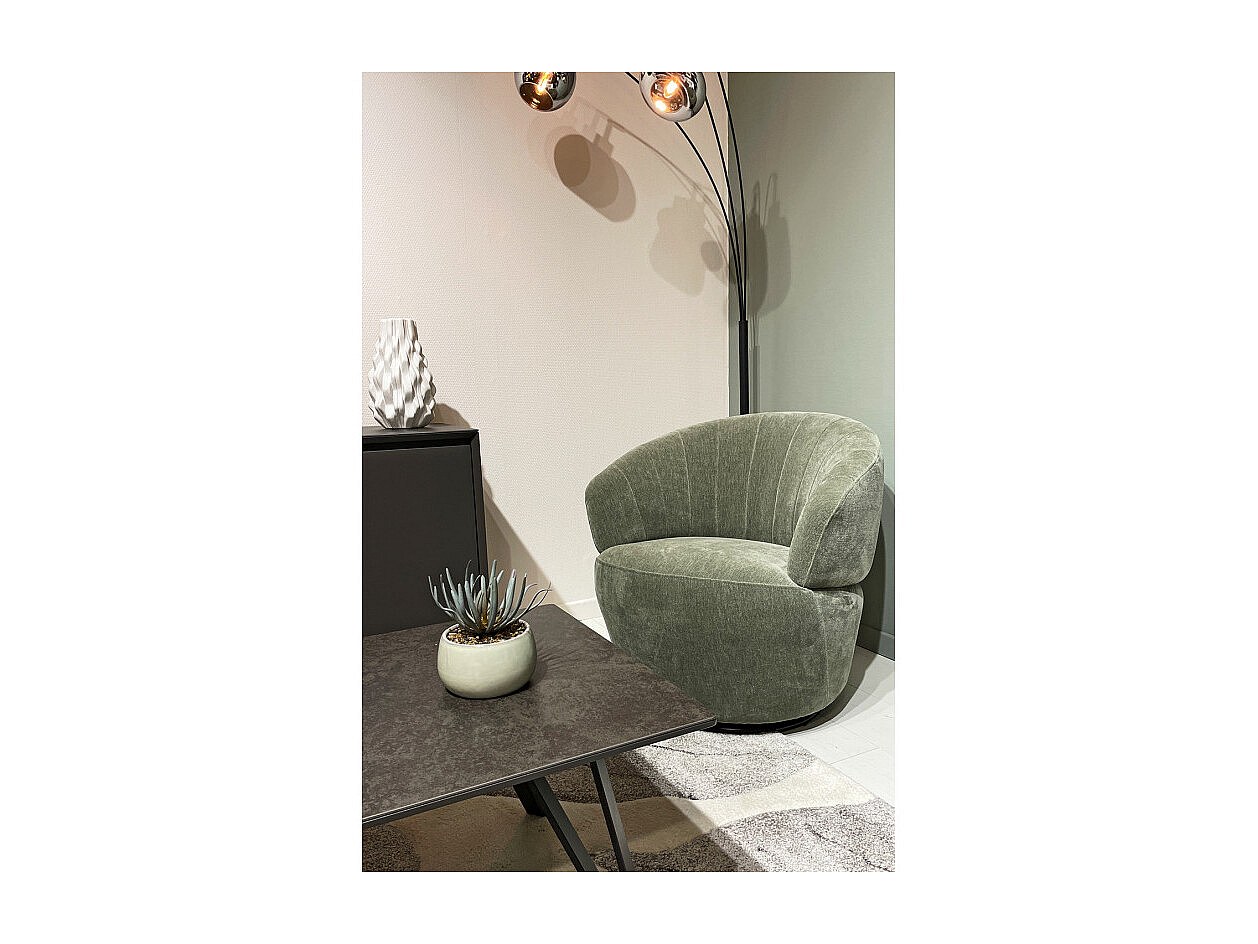 Fauteuil rond pivotant 360° tissu doux microfibre vert – COROLLA