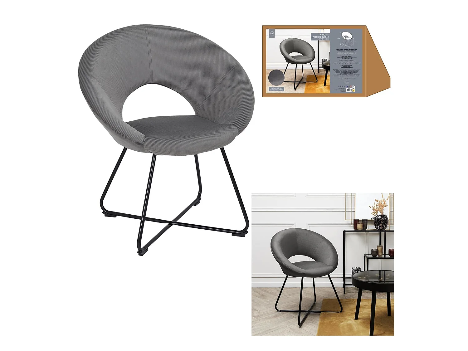 Fauteuil Rond Velours Cotele Giulia Gris Gris